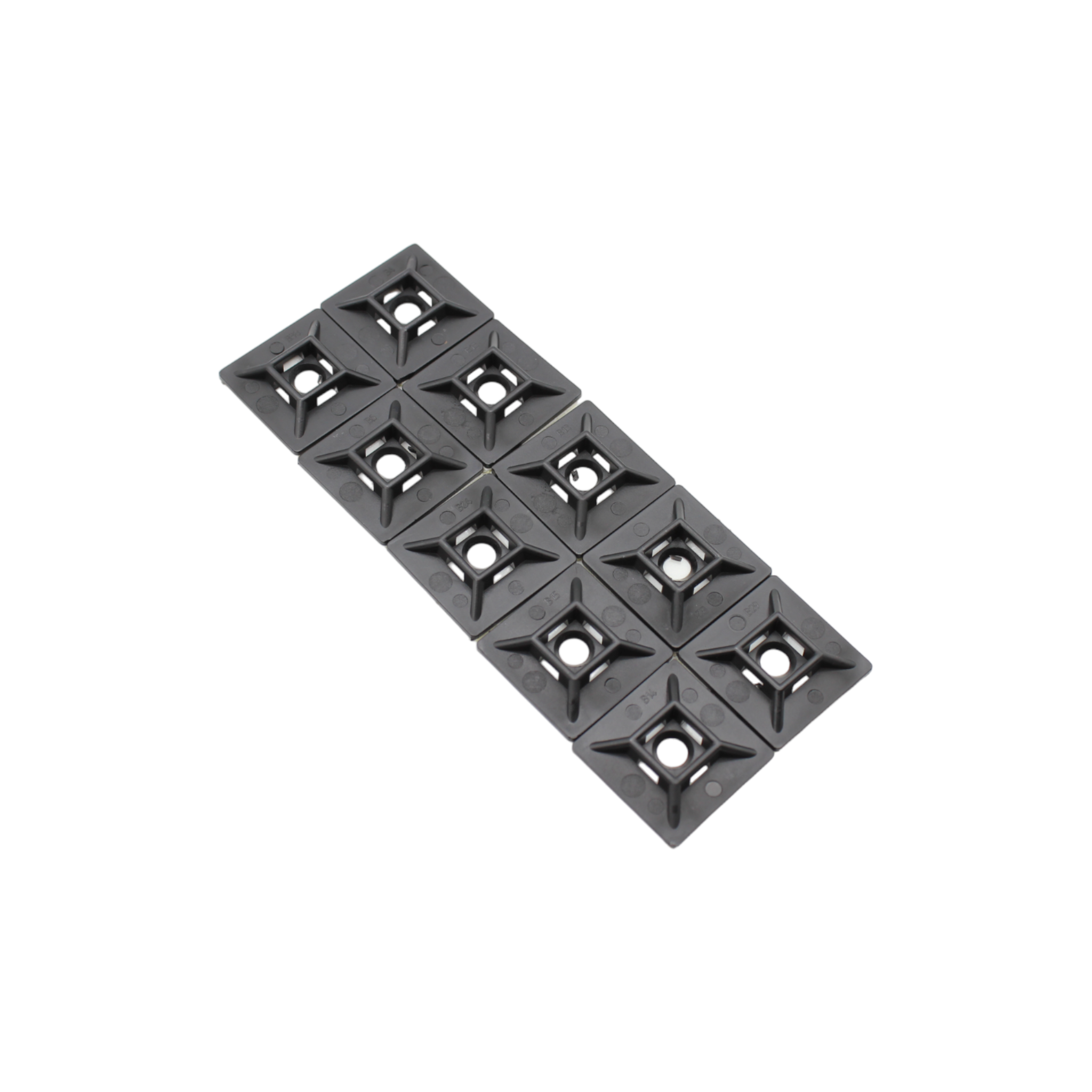 Monteringsplatta för buntband i 10-pack. Självhäftande, för montering på plan yta. Kan även fästas med skruv i mitten. Buntband ingår ej. Skruv ingår ej.
