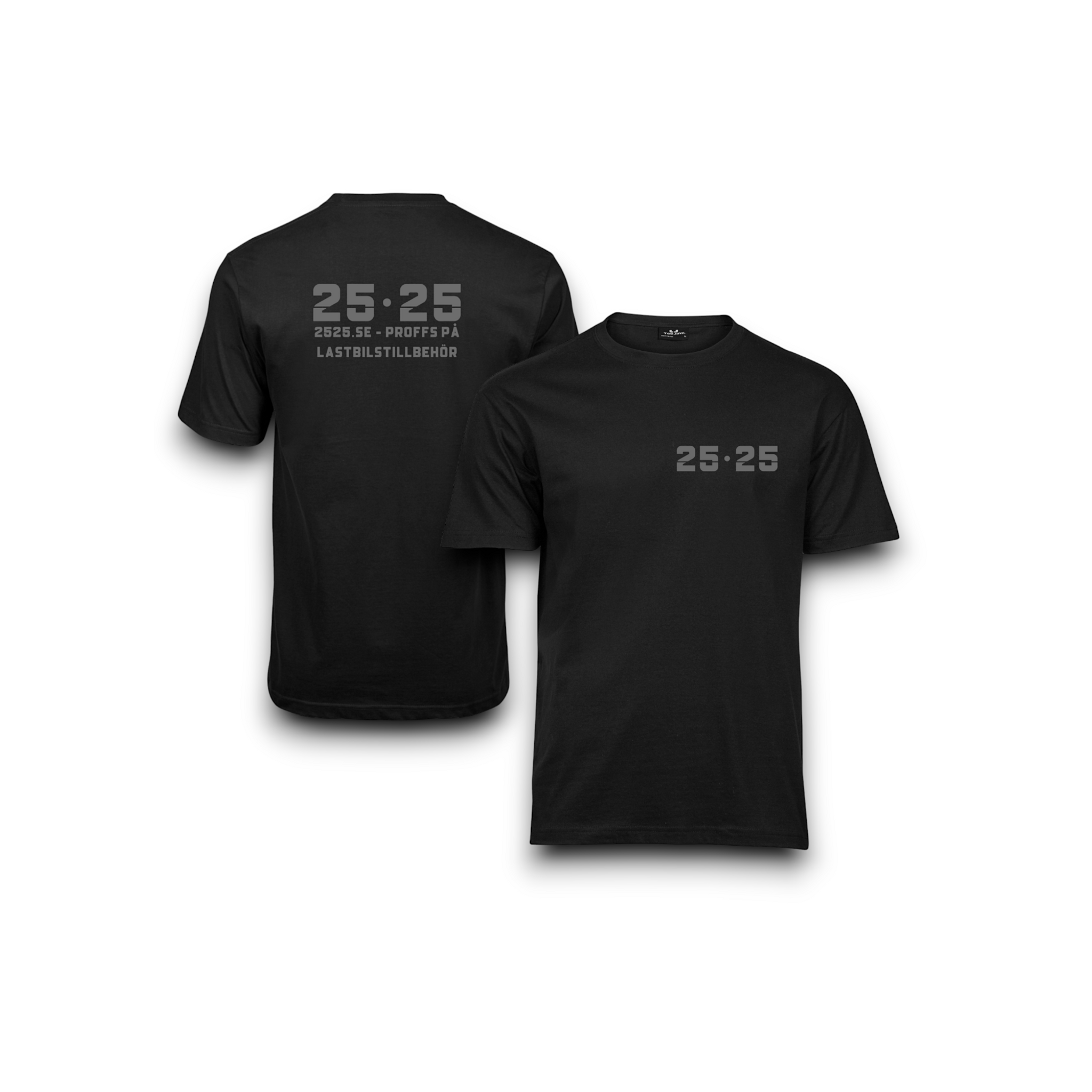 25•25 logo i grå tryck på bröst, logo med text på ryggen.