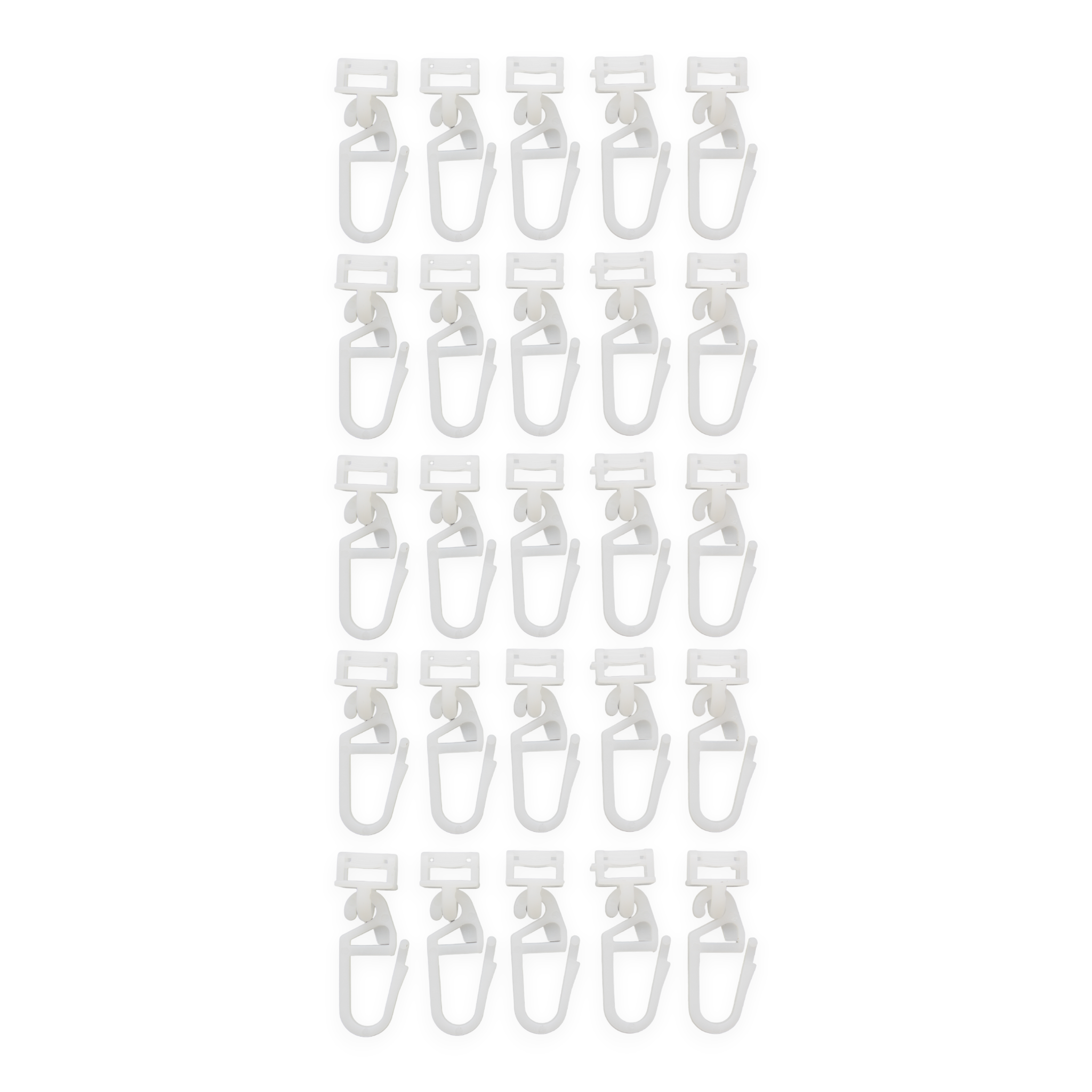 Plastic curtain hooks for installing curtains, designed to fit DAF and Mercedes trucks.