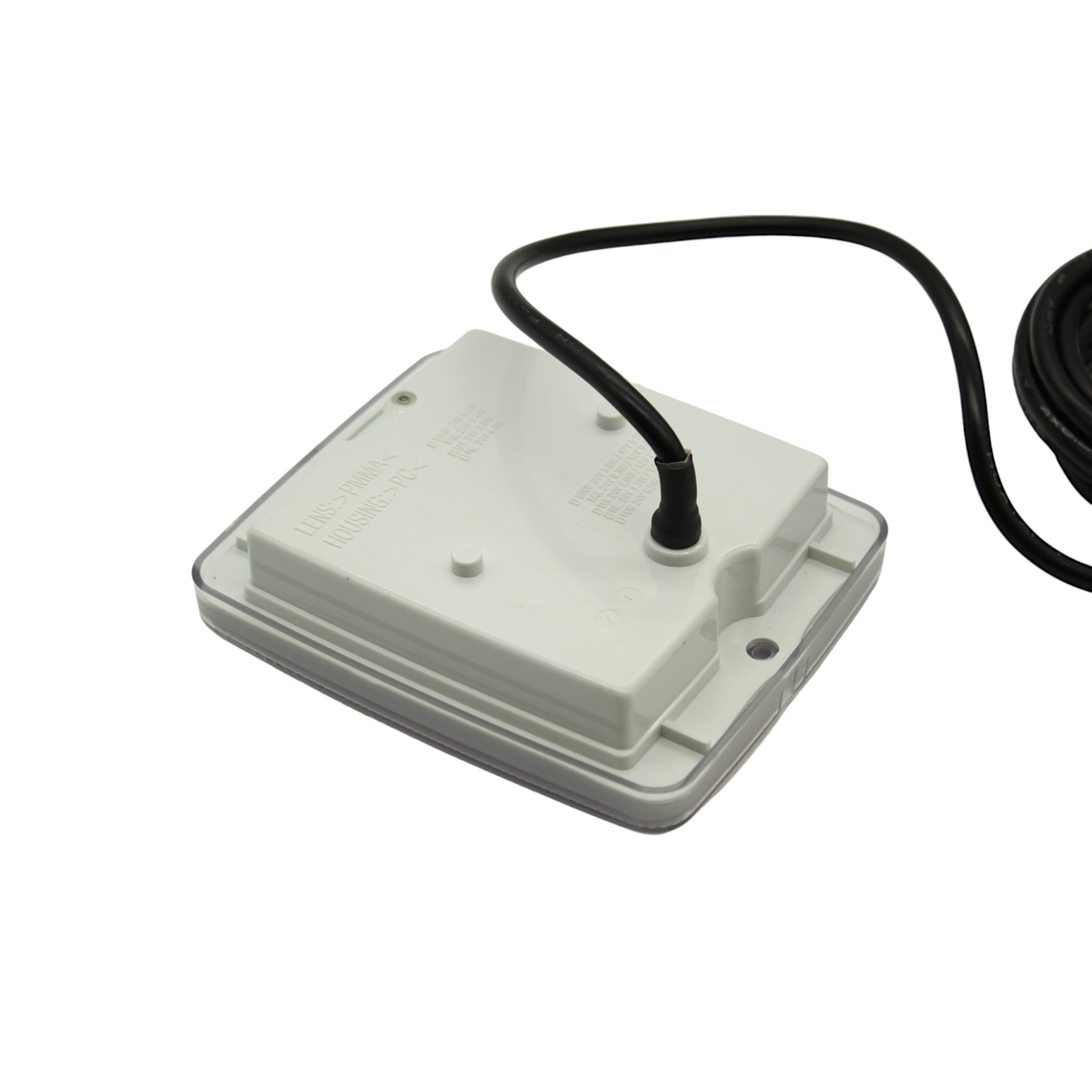 Kabeln är hela 2.5meter lång, insatsen har ett inbyggnadsdjup på 45mm. Monteras i gummihus för 1st lampa eller gummihus för 2st lampor.