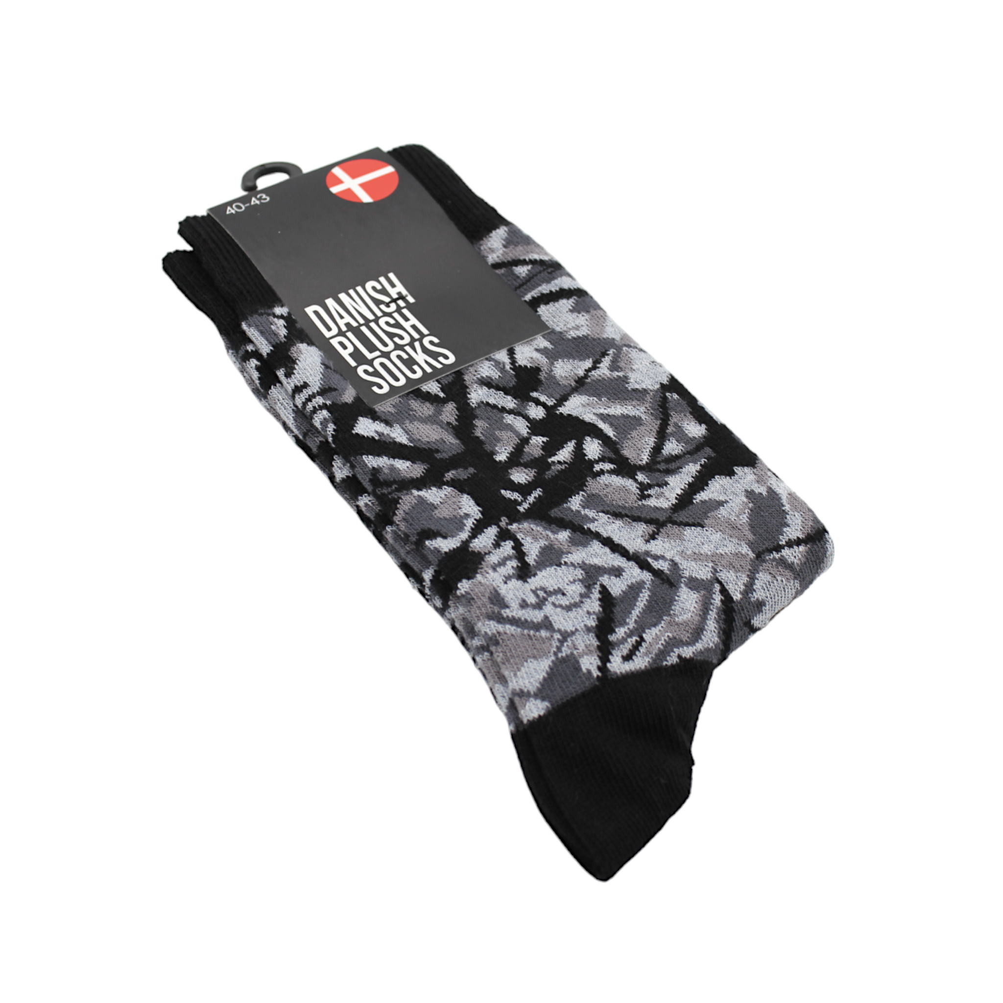 Socks with Danish plush upholstery print. Made of 80% cotton, 17% polyamide, and 3% elastane. The socks come in a single pack and are available in sizes 34-36, 37-39, 40-43, 44-46, and 47-49.