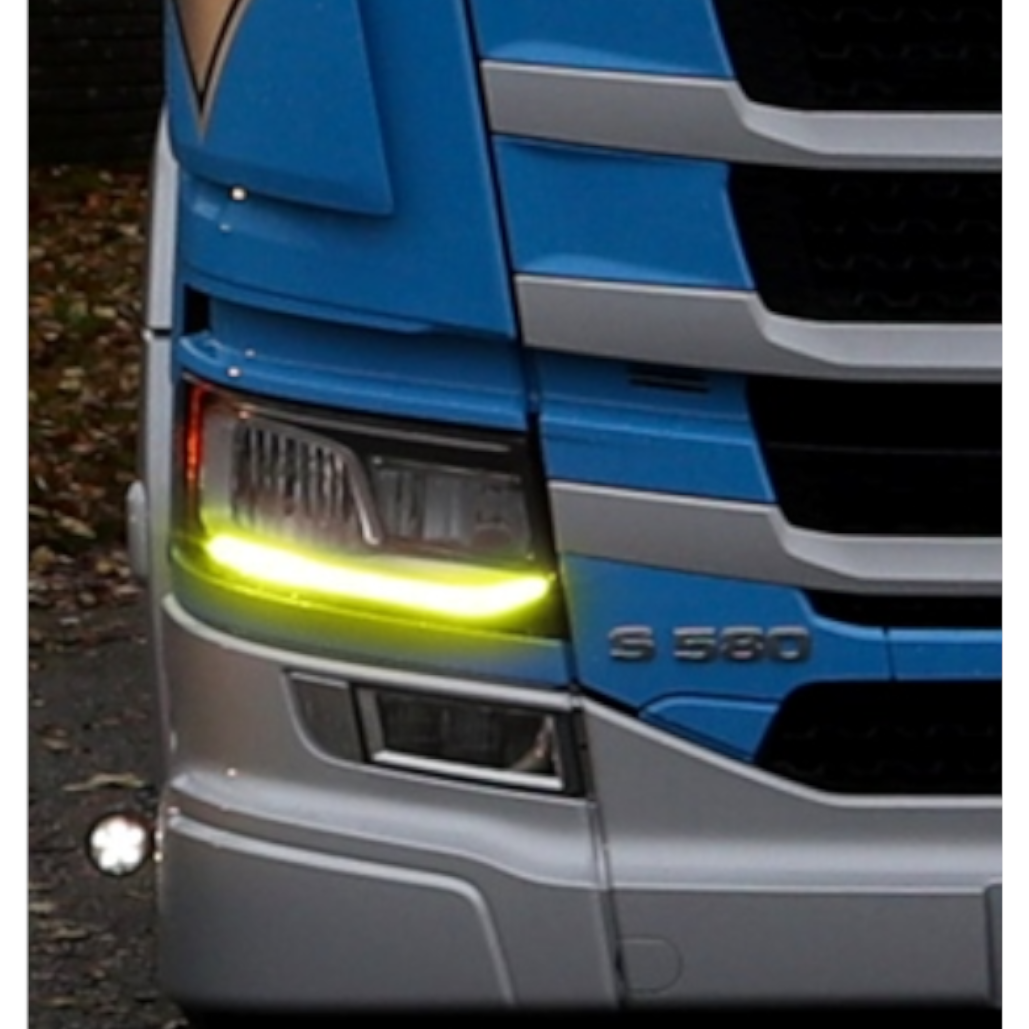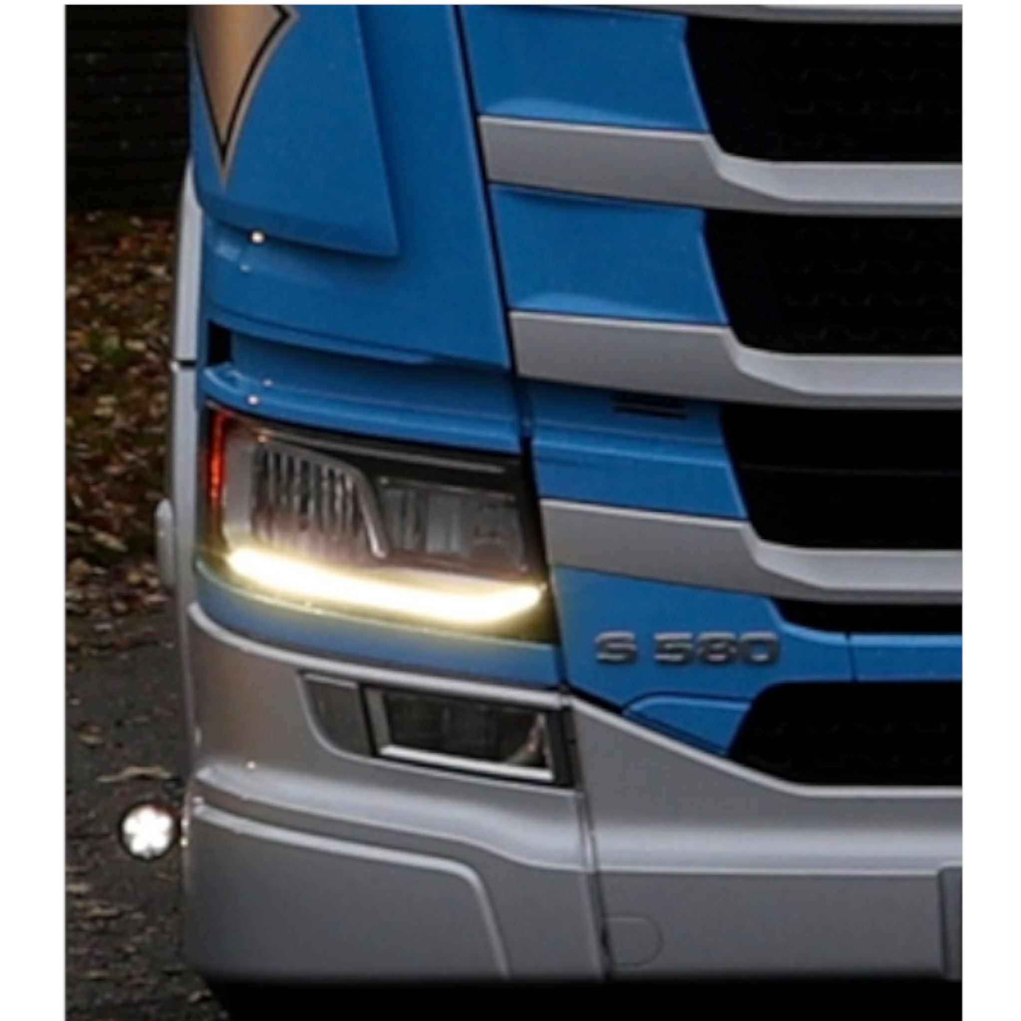 DRL/positionsljus konvertering till Scania S-serie & R-serie Next Generation årsmodell 2016 och uppåt. Levereras i set med LED plattor till båda strålkastare.