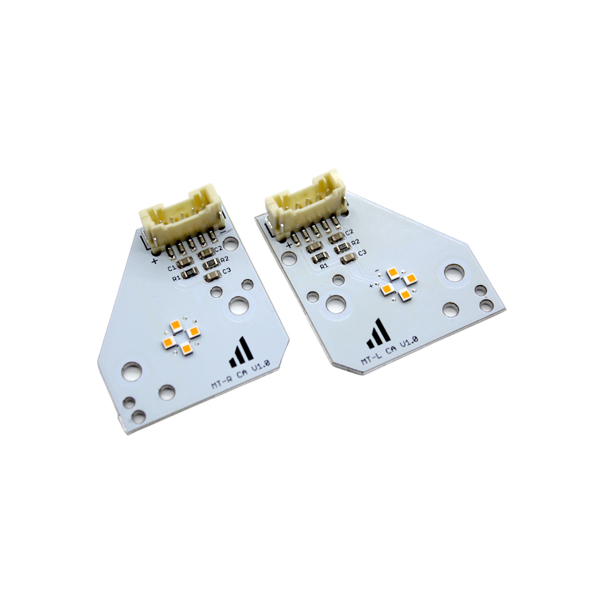 Det finns 6 meter kabel på ljusplattan med M8-kontakter, som ska anslutas till den medföljande kontrollenheten. Kontrollern hanterar de två färgerna och stänger automatiskt av dem när du aktiverar det blinkande ljuset. För att styra kontrollern finns det en utgående kabel med 4 ledningar: