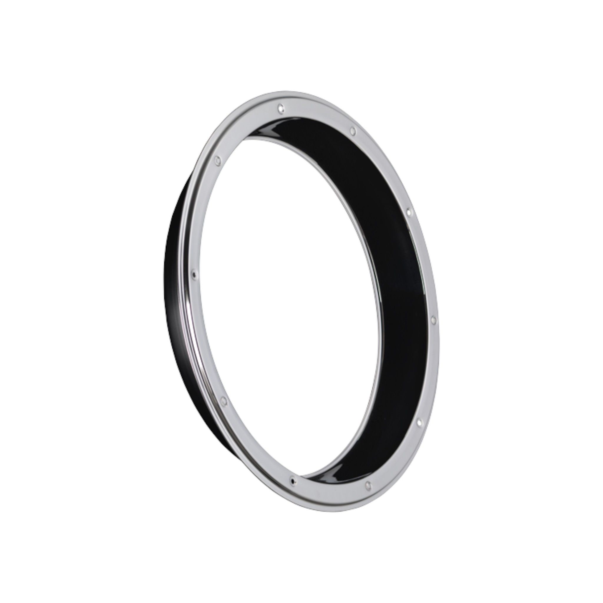 Hubcap/rim ring, high-polished and made of stainless steel. Fits rims sized 22.5". Easily mounted on the rim edge using the included mounting ring. Depth: 82 mm.