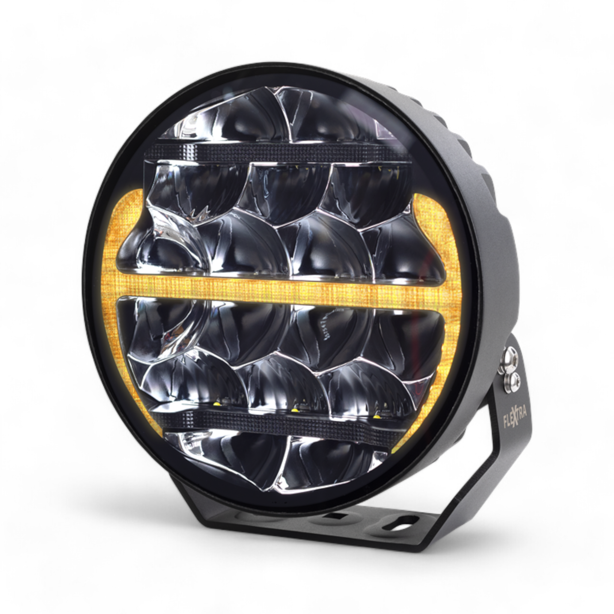 Discover the Flextra Predator, an E-approved LED auxiliary light that combines sleek design with exceptional brightness. With an impressive output of 110 watts and a unique position light with a dynamic start-up function in two colors: white or orange, the Flextra Predator delivers 1 lux at a remarkable 750 meters, ensuring optimal visibility under all driving conditions.