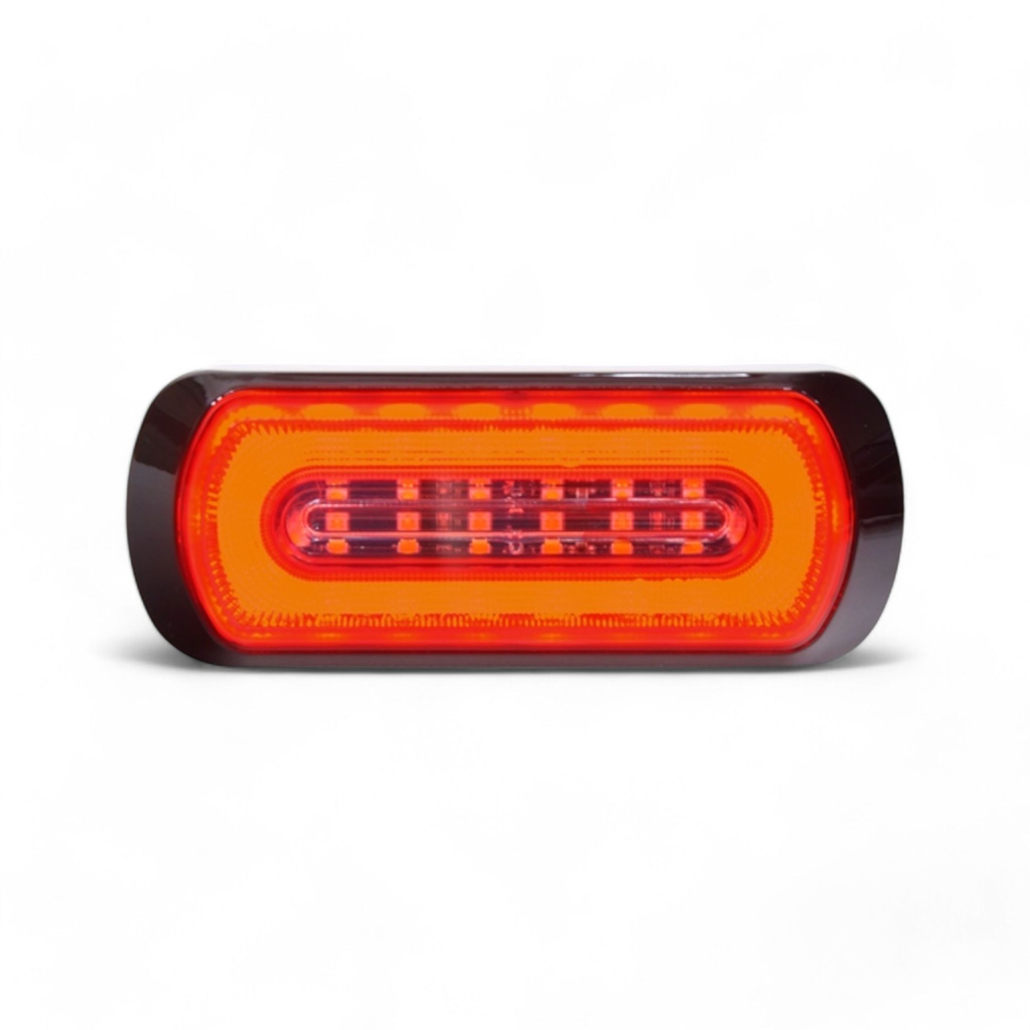 Strobe/warning light lamp with a halo side/position light around the edge of the lamp and a bright LED strobe warning light in the center. The lamp is available with side/position lights in red, white, and orange colors, and a strobe light in the middle.