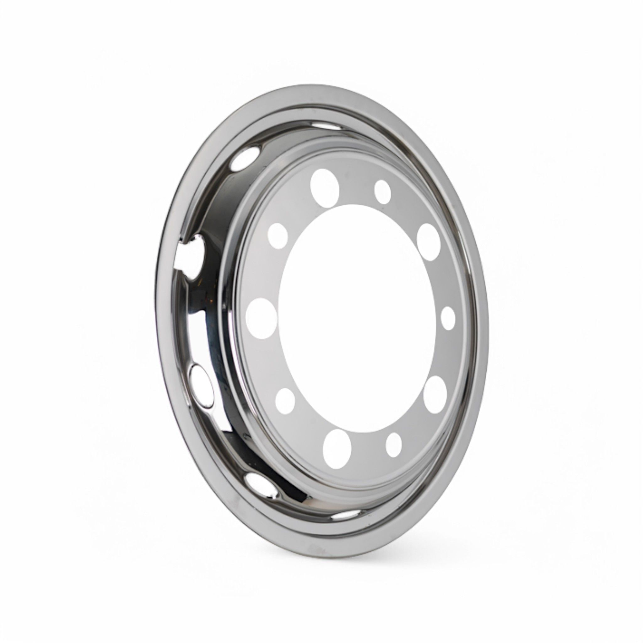 Hjulsida i blankpolerat rostfritt stål. För montering på framaxel.