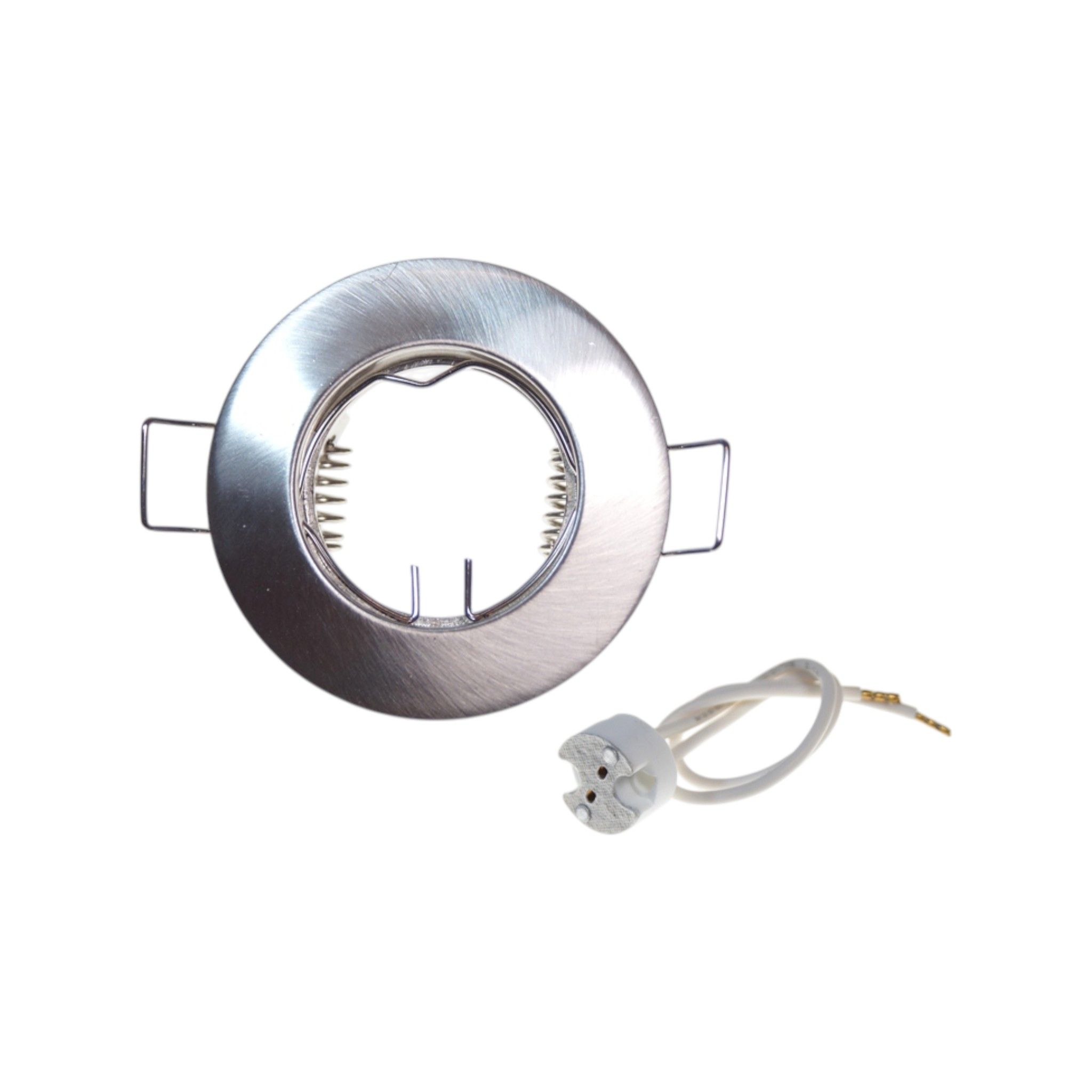 Infällnadsram i borstad aluminium-look till Spotlight GU4/MR11. Infällnadsramen är 60mm i diameter.