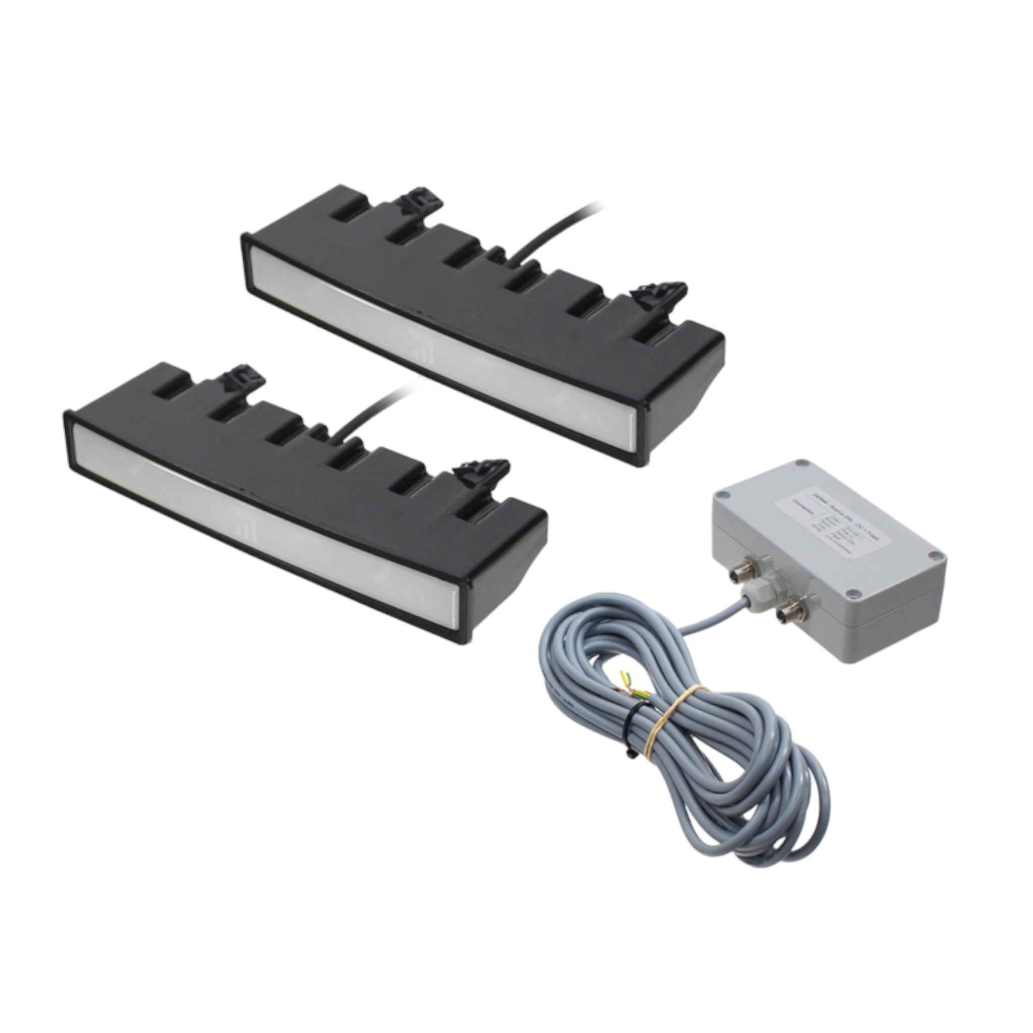 Det finns 7 meter kabel på varje lampa med M8-kontakter, som ska anslutas till den medföljande kontrollenheten. Kontrollern hanterar de två färgerna och stänger automatiskt av dem när du aktiverar det blinkande ljuset. För att styra kontrollern finns det en utgående kabel med 4 ledningar: