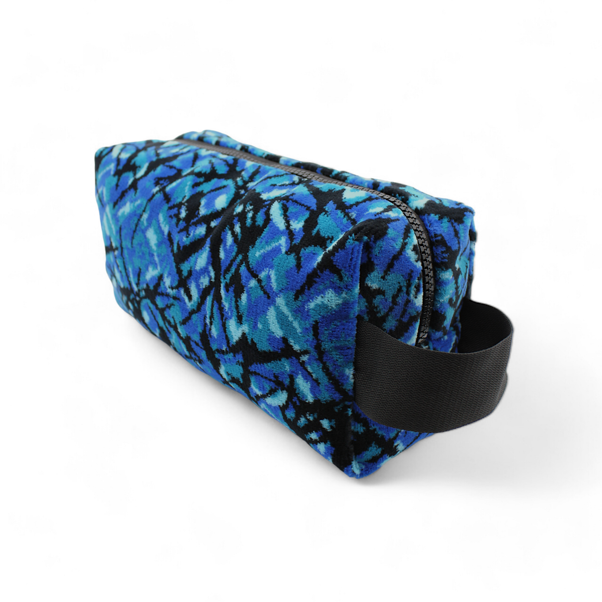 This stylish and compact trucker toilet bag in blue danish plush is the smallest of the three bags in our danish plush-bag collection. Made from genuine danish plush fabric and available in 3 different colors: red, grey, and blue danish plush.