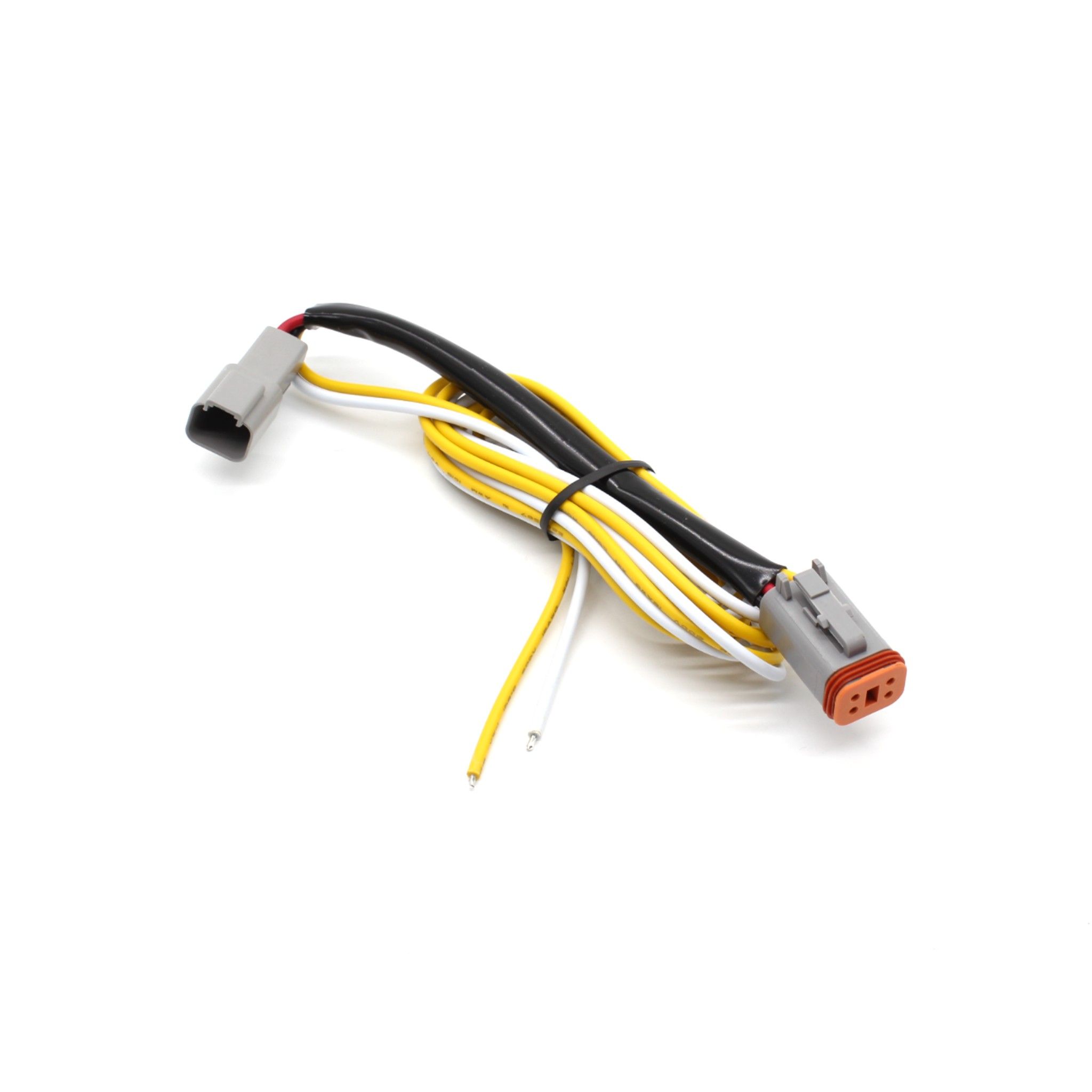 Designed for situations where your relay harness has a 2-pin DT connector, but your LED bar/auxiliary light has a 4-pin DT connector, allowing you to connect two loose wires to integrate the parking light.