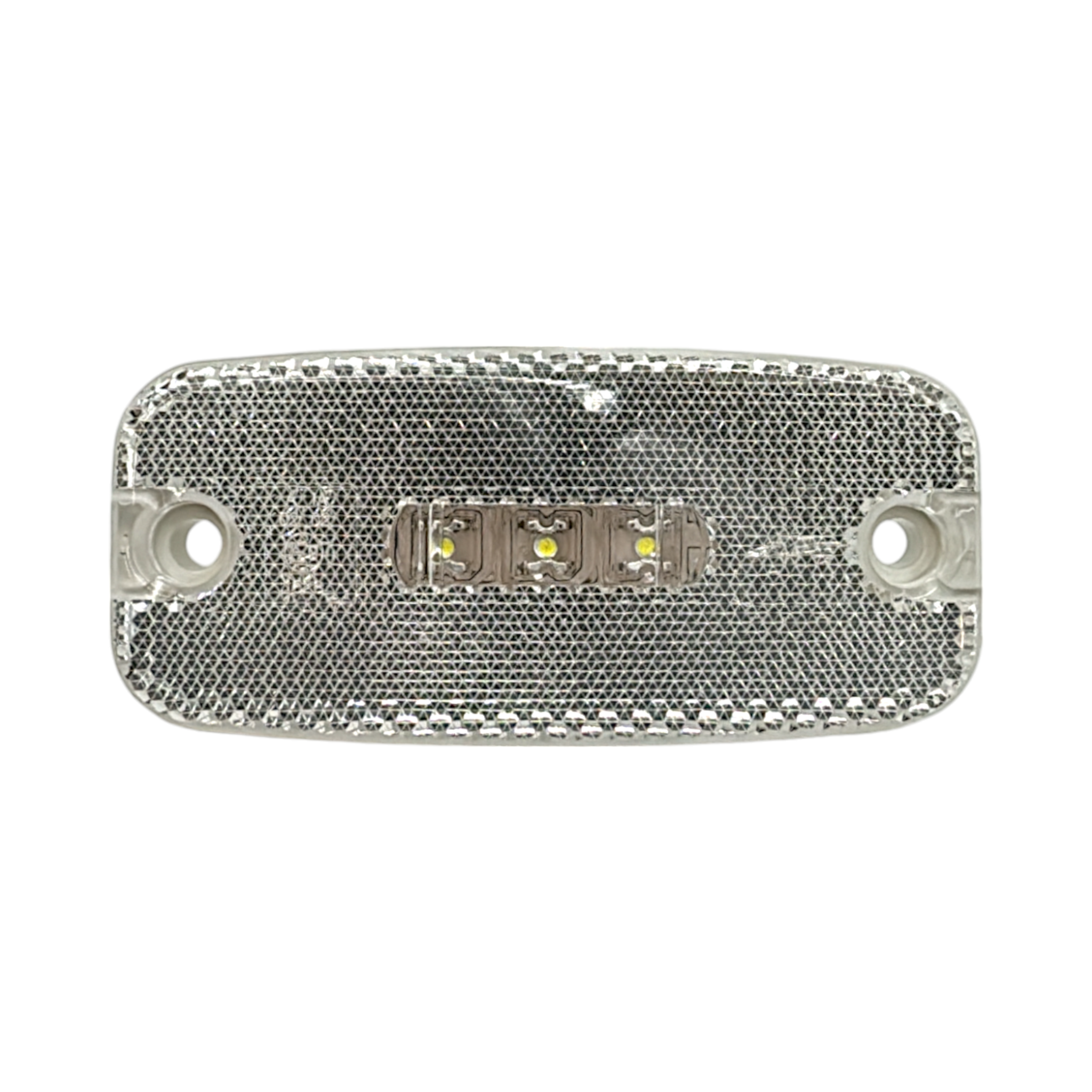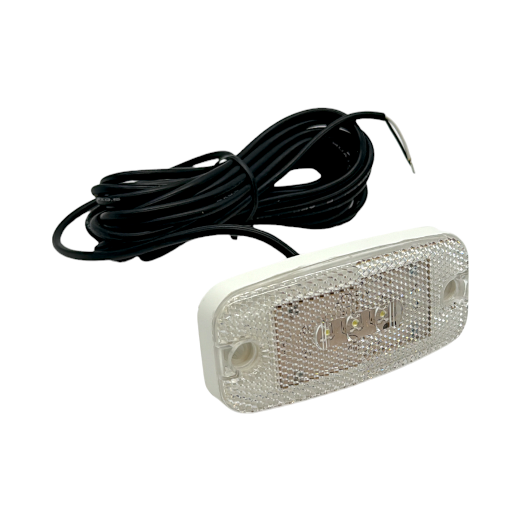 E-godkänd vit LED positionsljuslampa med reflex inbyggt. Helt vattentät tack vare ultraljudssvetsningen vid kabelns ingång på baksidan. Levereras med 5meter kabel.