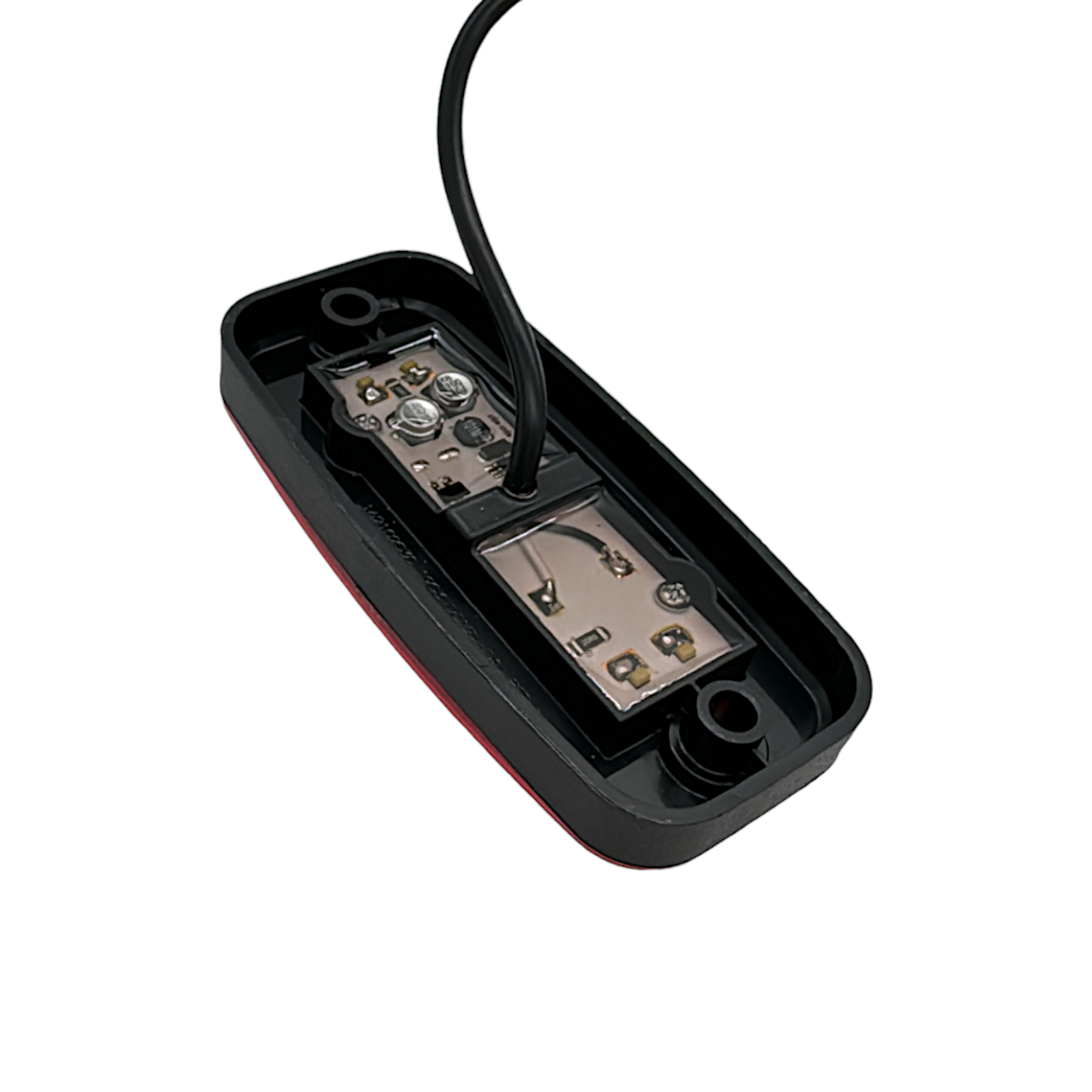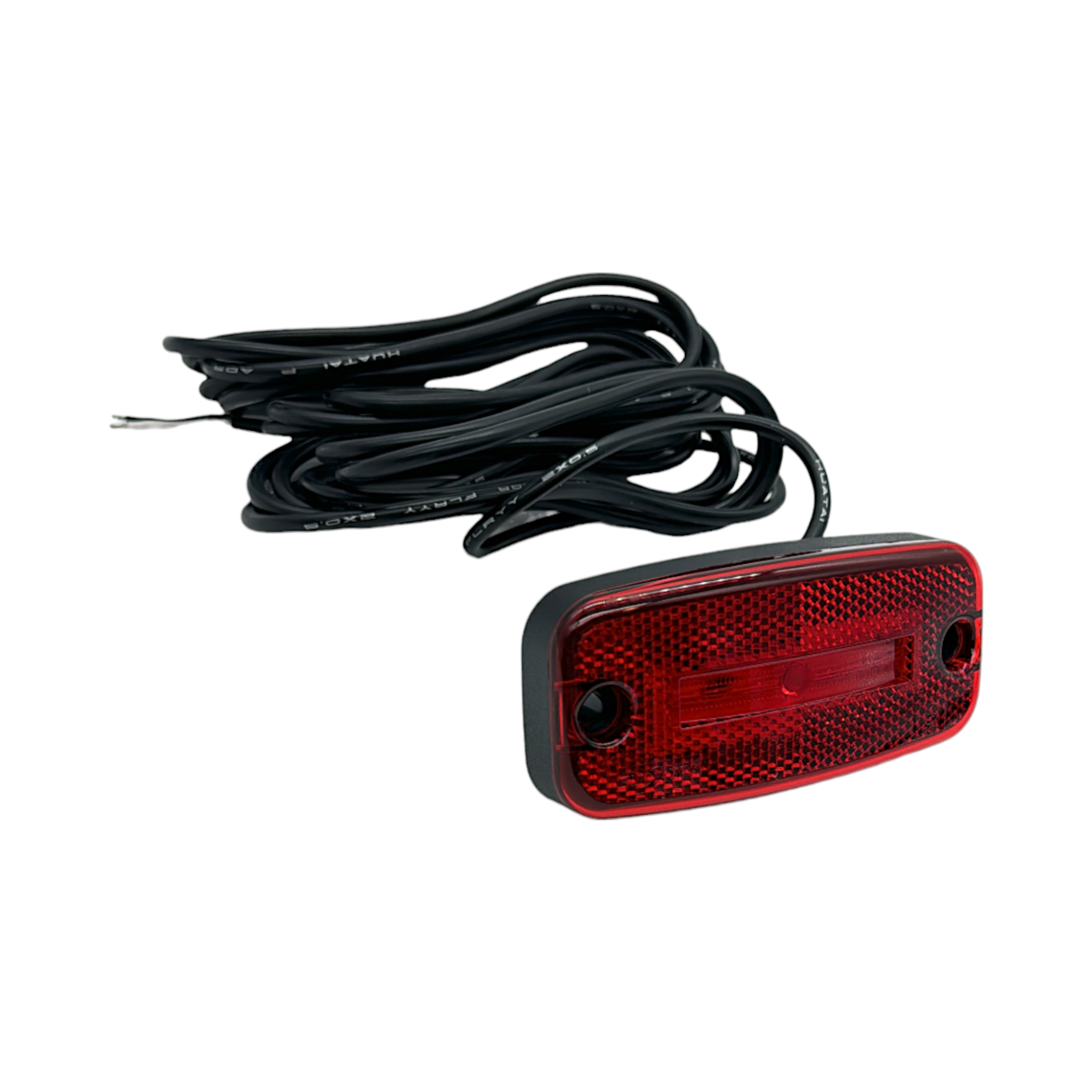 E-godkänd röd fiberoptisk positionsljuslampa med reflex inbyggt. Helt vattentät tack vare ultraljudssvetsningen vid kabelns ingång på baksidan. Levereras med 5meter kabel.