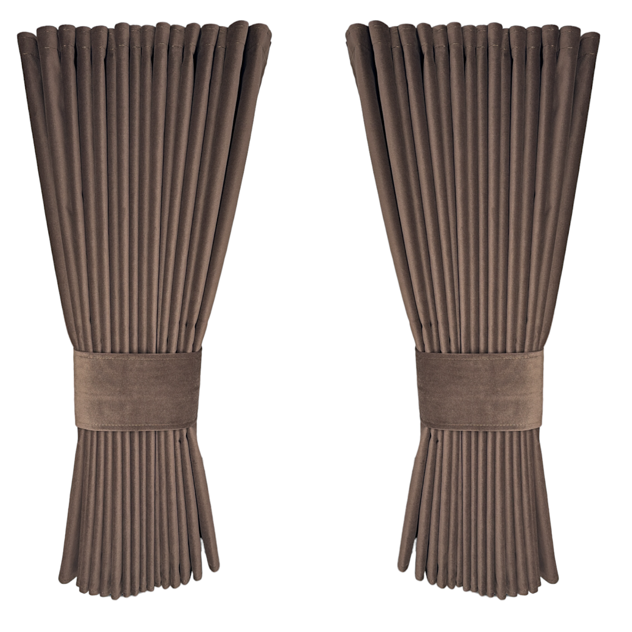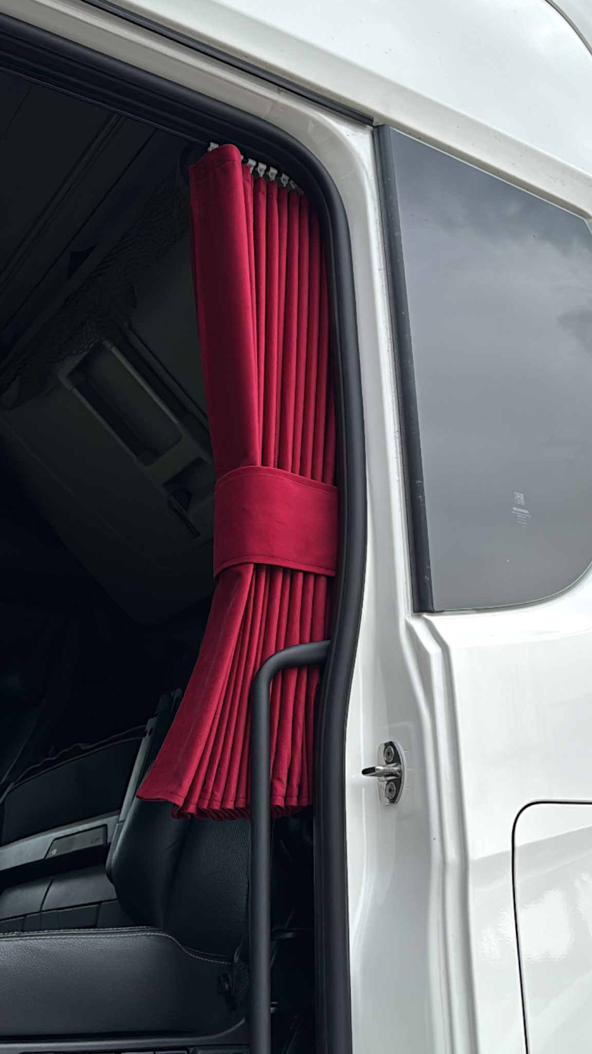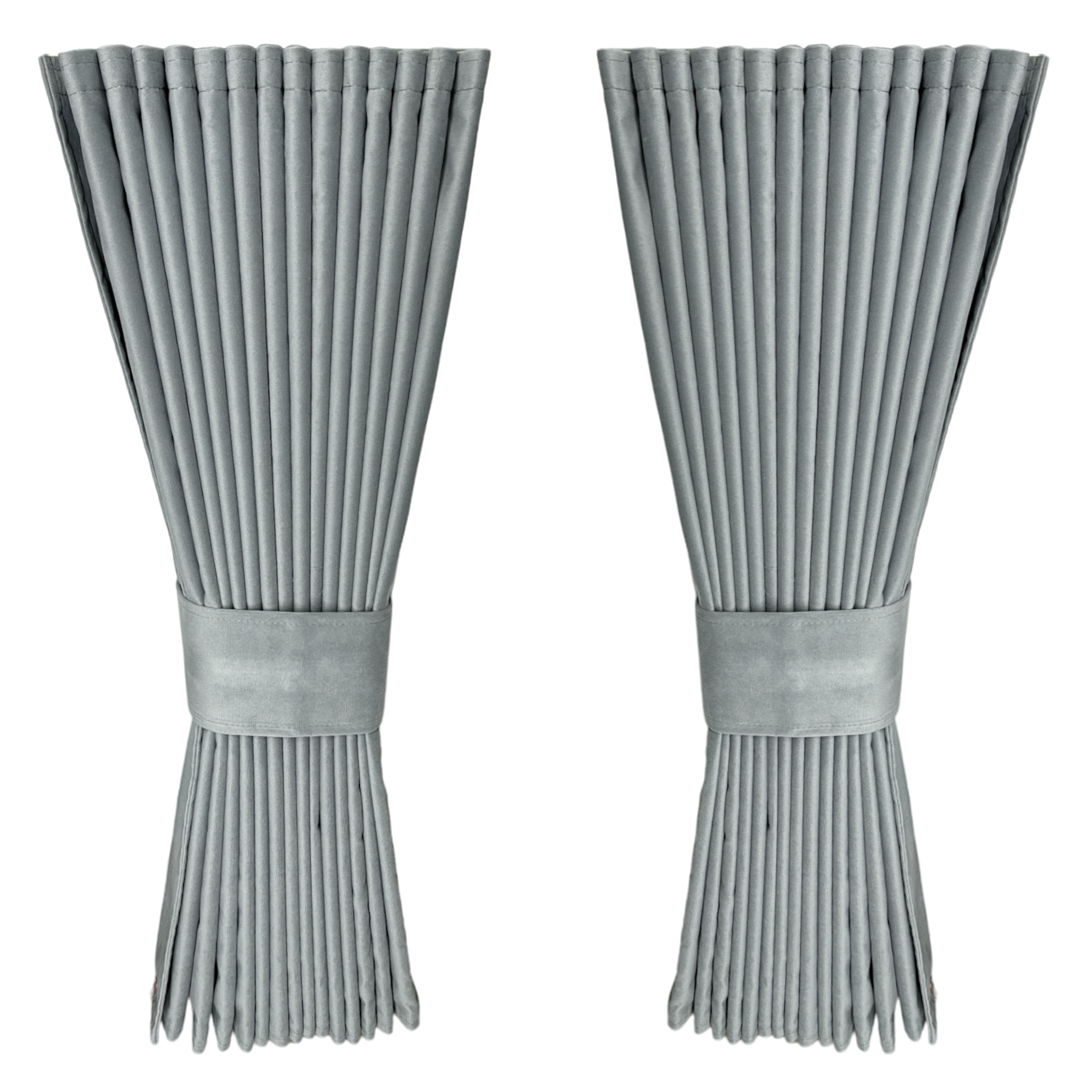 Double-stitched window curtains for trucks, made from Antara Lux fabric, offering the highest quality in both durability and feel. Delivered as a set of two curtains and two tiebacks with Velcro. The curtains are 90 cm high.