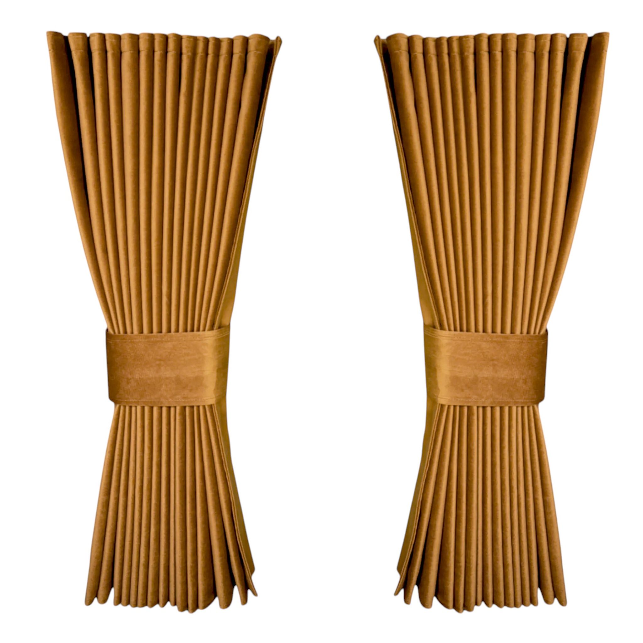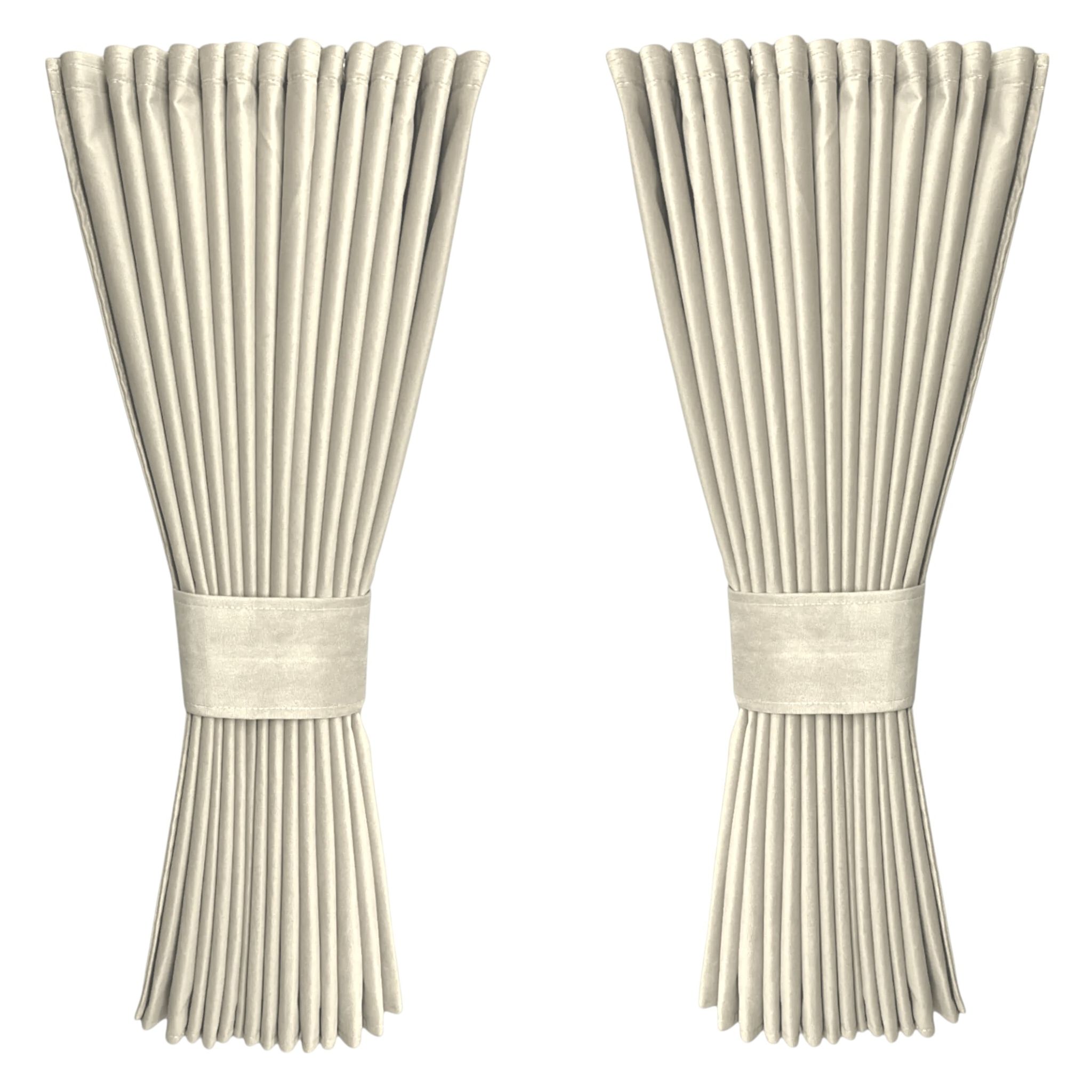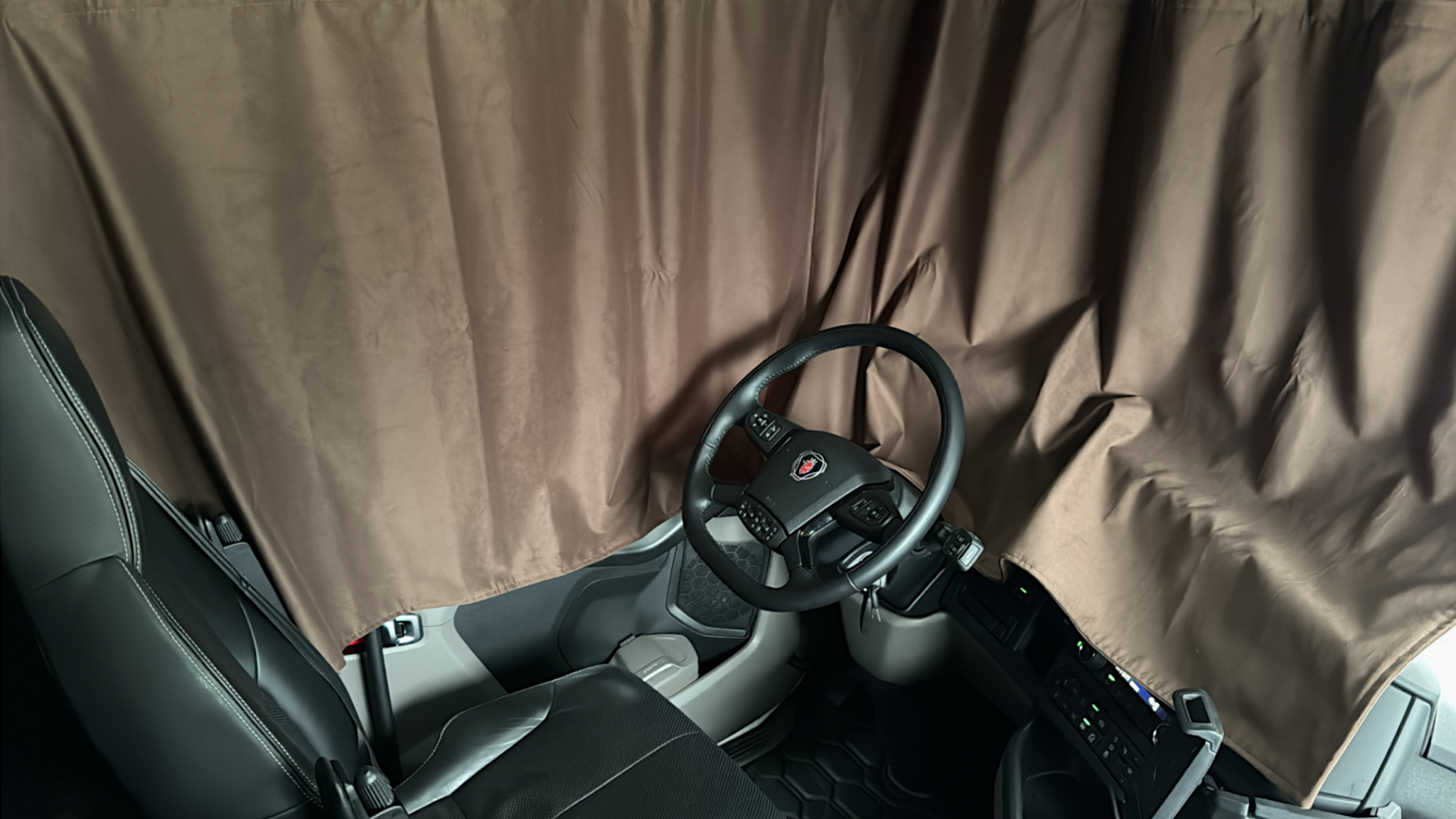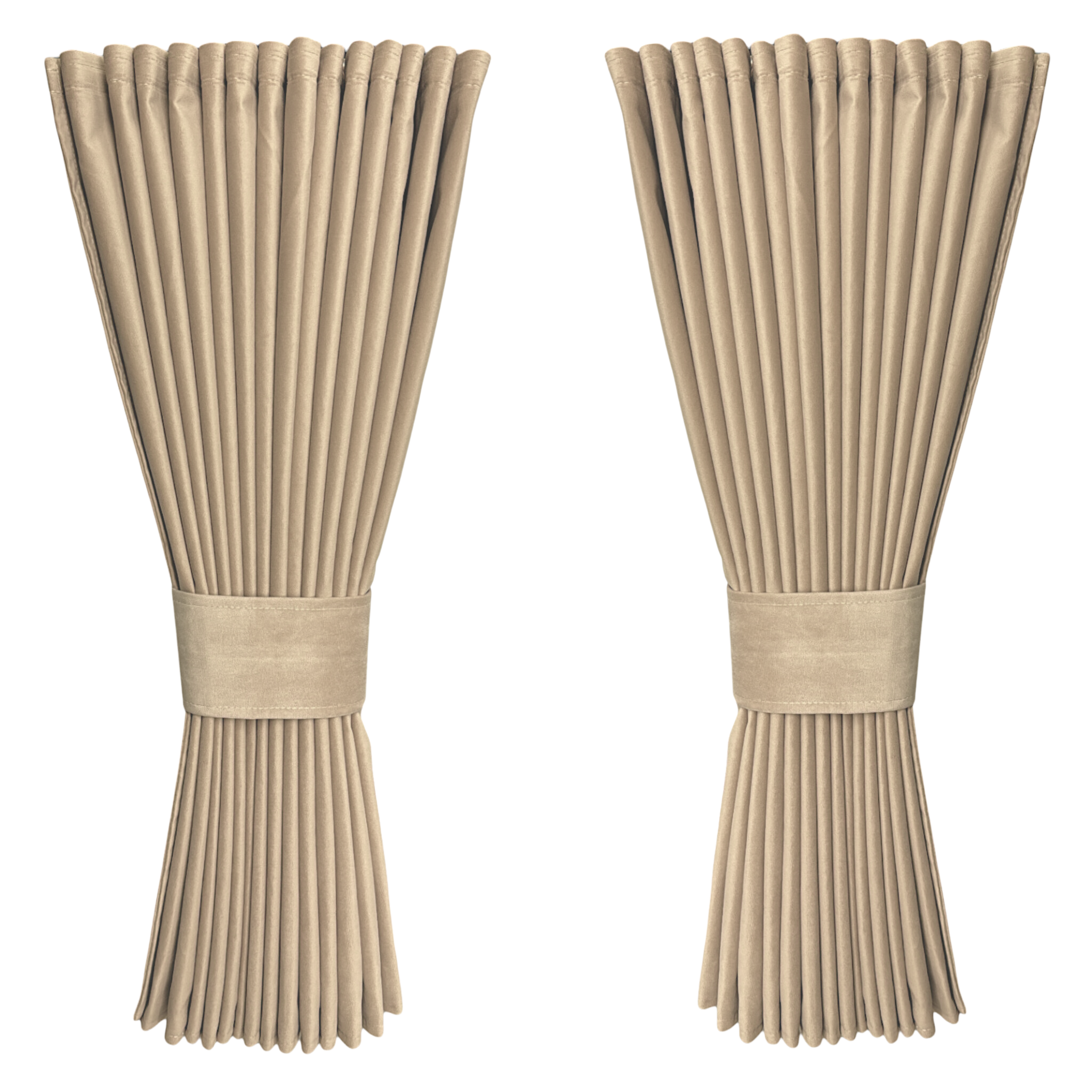 Double-stitched window curtains for trucks, made from Antara Lux fabric, offering the highest quality in both durability and feel. Delivered as a set of two curtains and two tiebacks with Velcro. The curtains are 90 cm high.