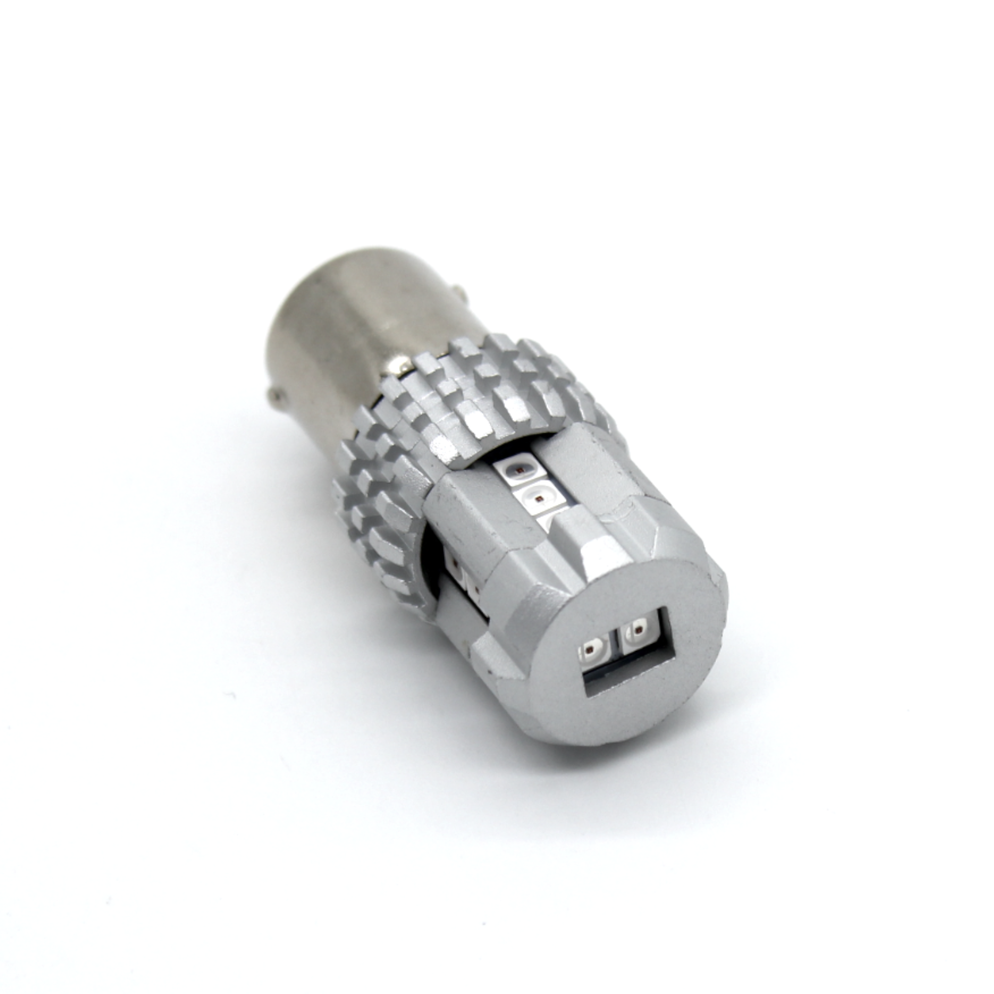 En mycket ljusstark xenonvit LED lampa med sockel BA15s. Fungerar med både 12 och 24volt. 2 dioder framåt och 12 dioder på sidorna för bästa ljusspridning.