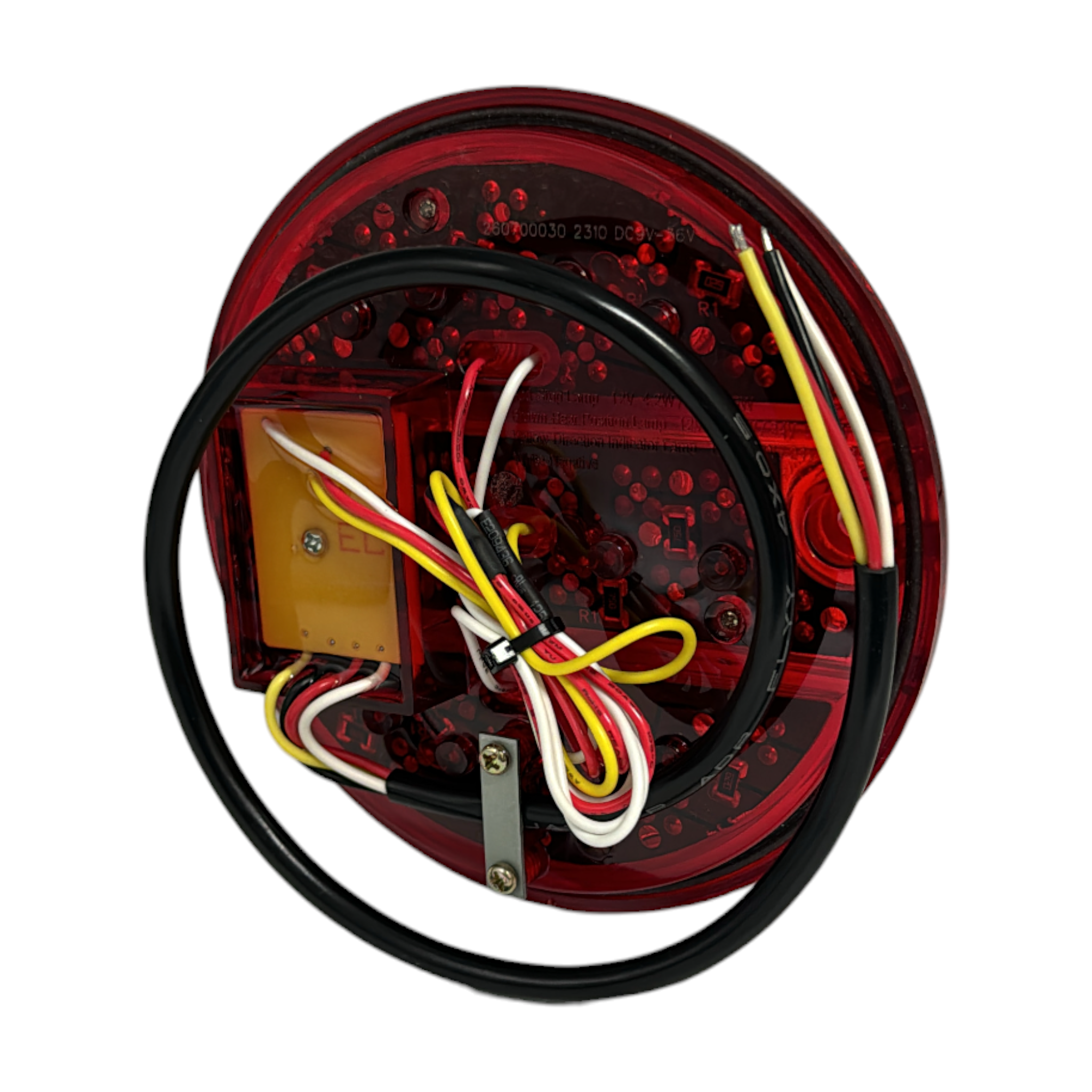 Den traditionella hamburgare multifunktions-baklyktan. Helt vattentät då kablarna på baksidan är ultraljudssvetsade. Bakljus, bromsljus samt blinkers i samma lampa. E-godkänd.