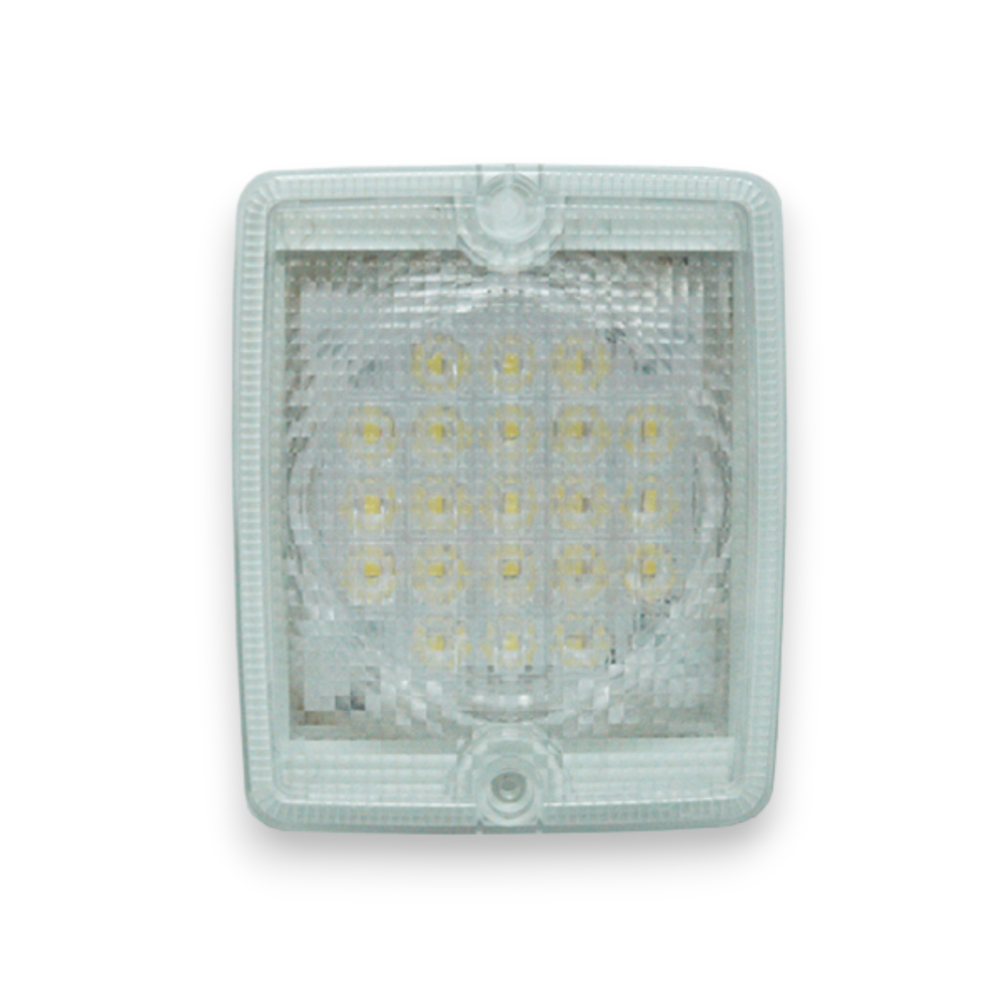 LED lampinsats med dubbla linser i PMMA plast, 21 st dioder. Monterad kabellängd 2,5m, inbyggnadsdjup 45mm. Monteras i gummihus enkel eller dubbel.