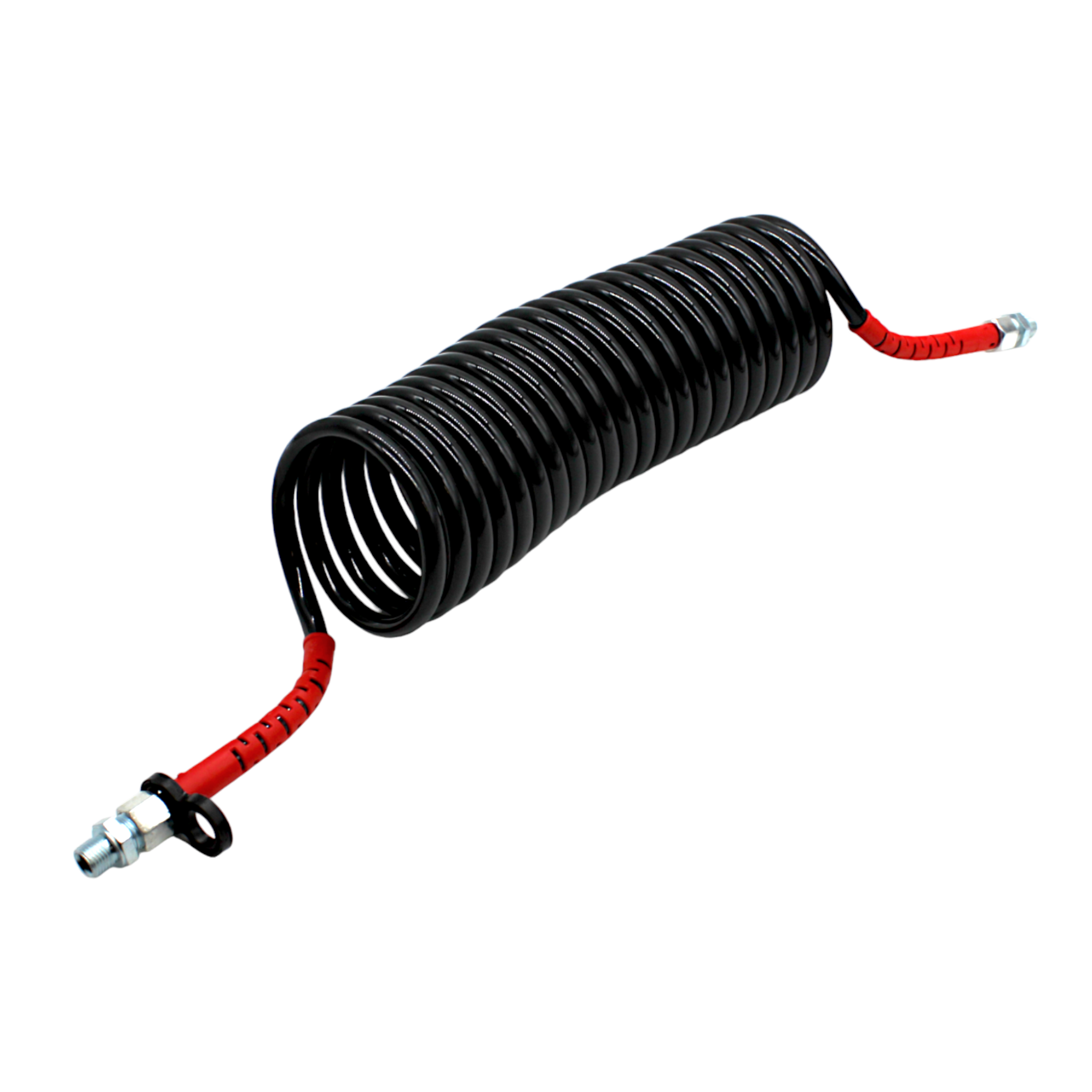 Denna högkvalitativa luftbromsslang är utformad för att möta kraven fordonsapplikationer. Med en längd på 4,5 meter och komplett med kopplingar, är installationen enkel och smidig. Bromsslangen har en invändig M18-gänga och levereras med en adapter för utvändig M16-gänga, vilket ger flexibilitet vid montering.