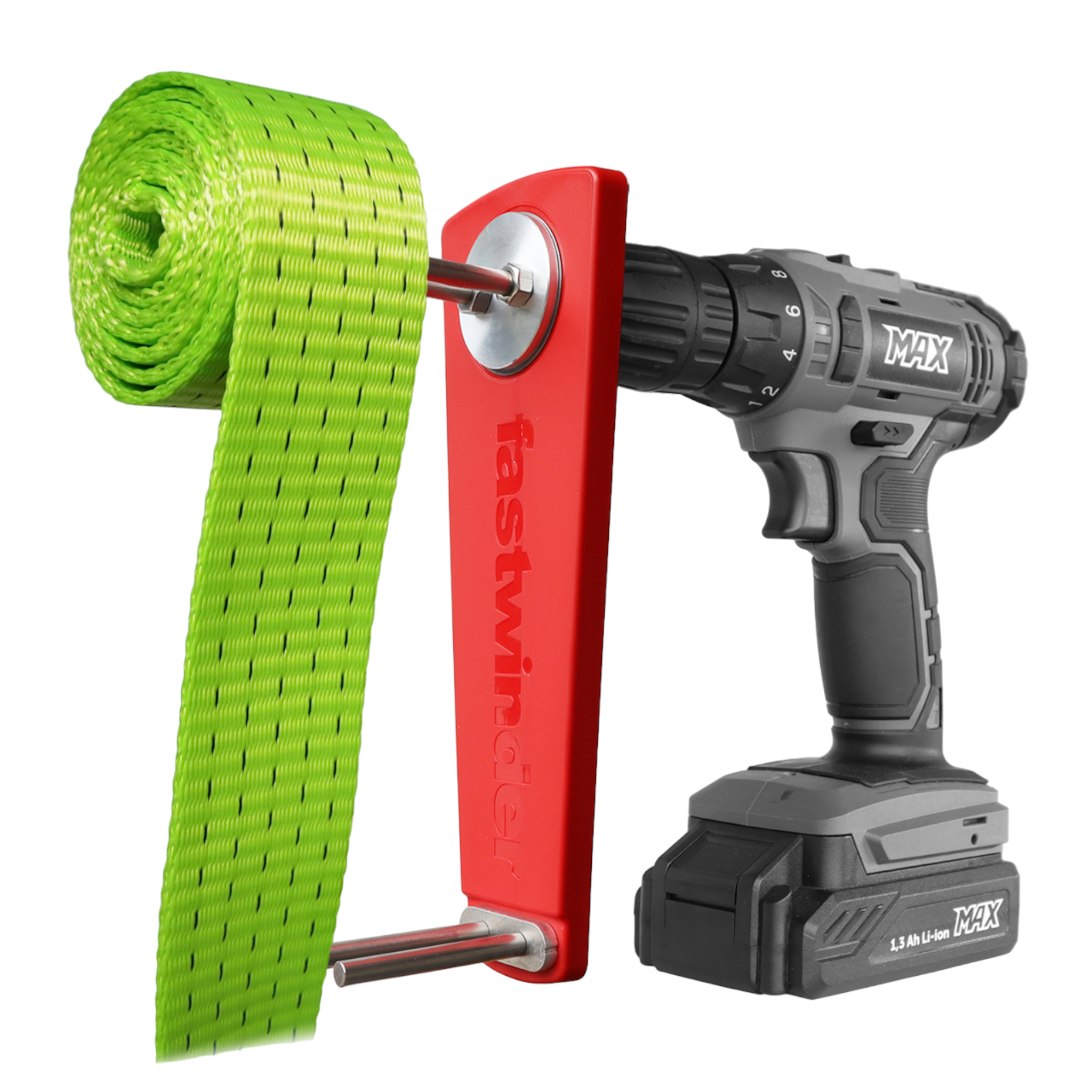 Robust spännbandsupprullare för batteridrivna skruvdragare avsedd för hantverkare och lastbilschaufförer. Tillverkad med den ursprungliga och patenterade Dynello-designen som ger utmärkt kontroll över spännbandet under upprullningen.