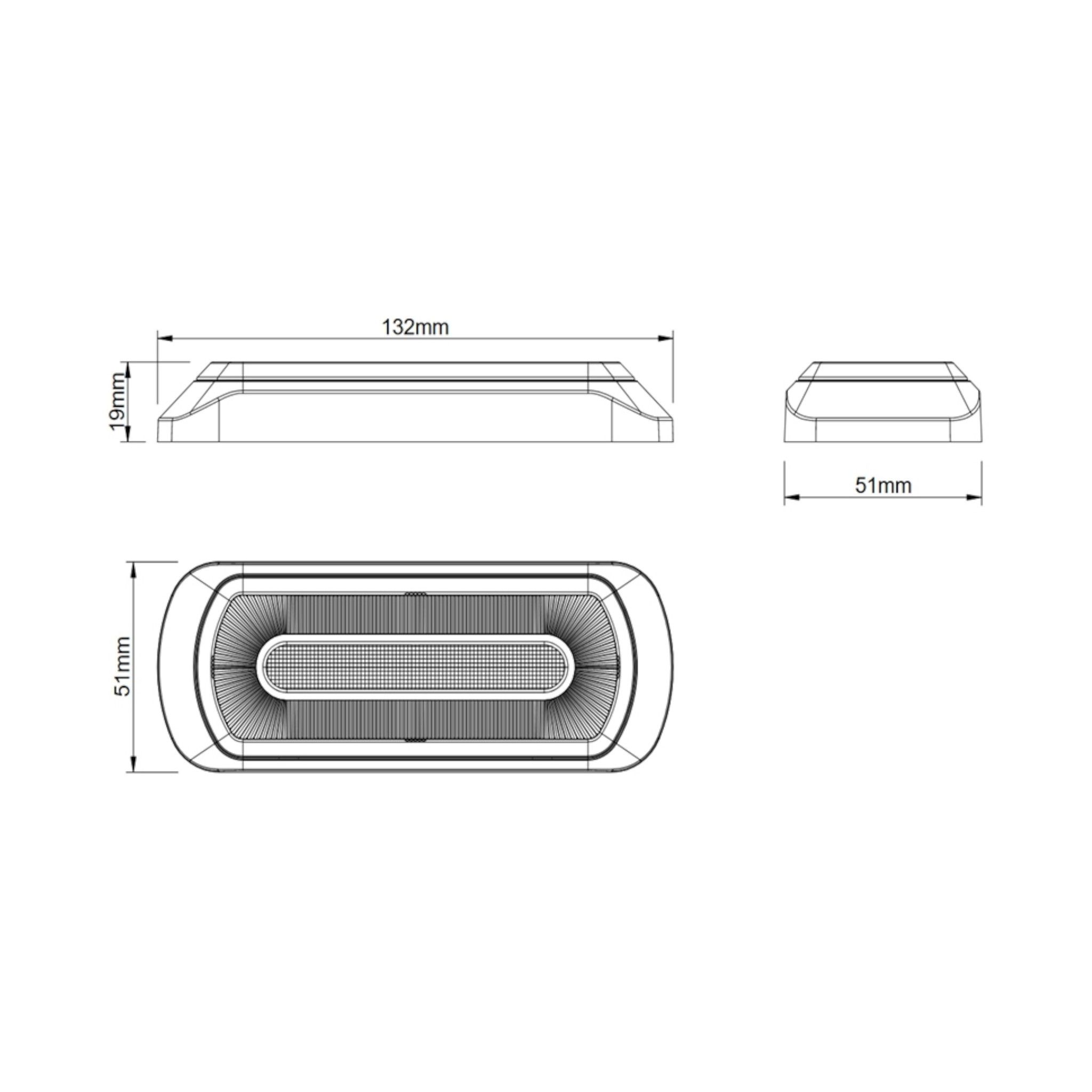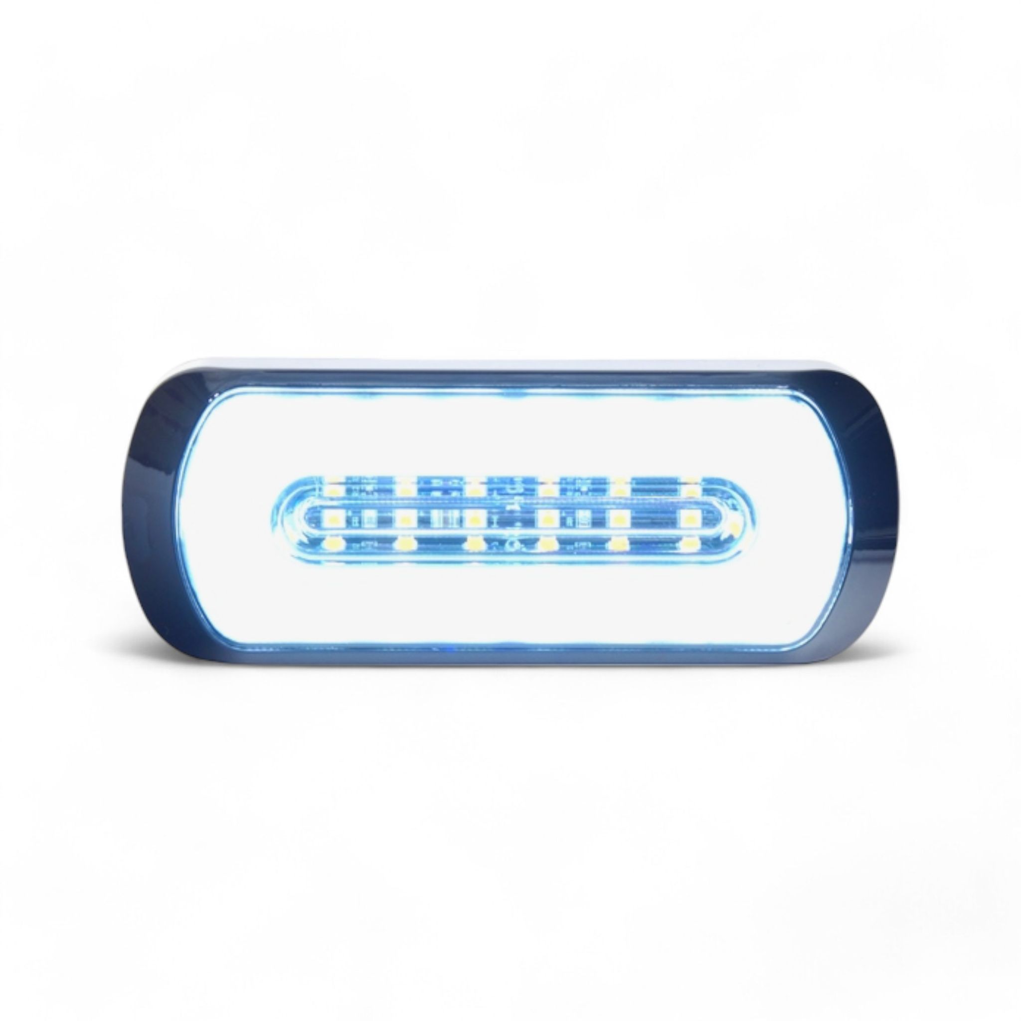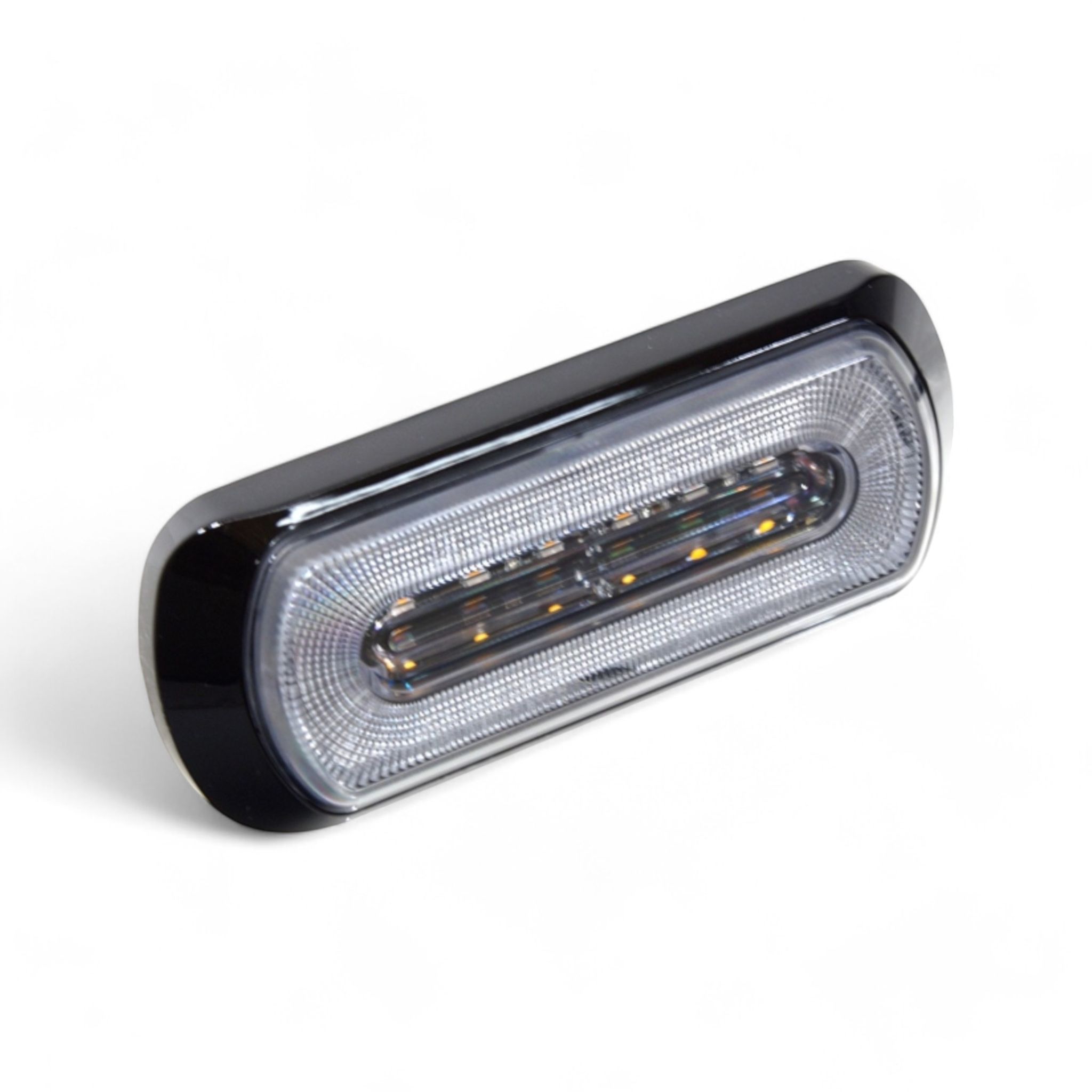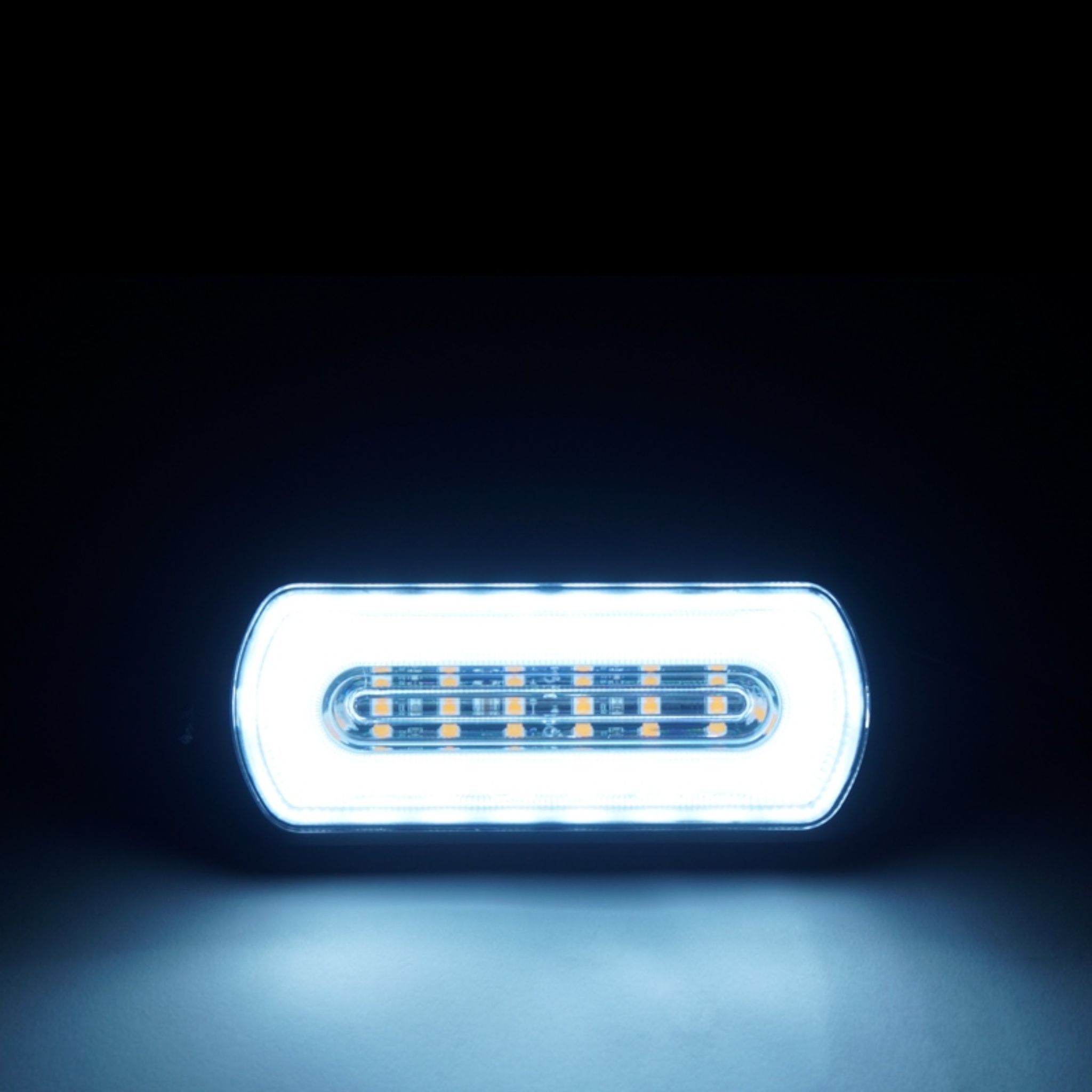 Blixt/varningsljus lampa med halo sido-/positionsljus runt kanten på lampan och ett starkt LED-strobe varningsljus i mitten. Lampan finns med sido-/positionsljus i röd, vit och orange färg, och ett strobe-ljus i mitten.
