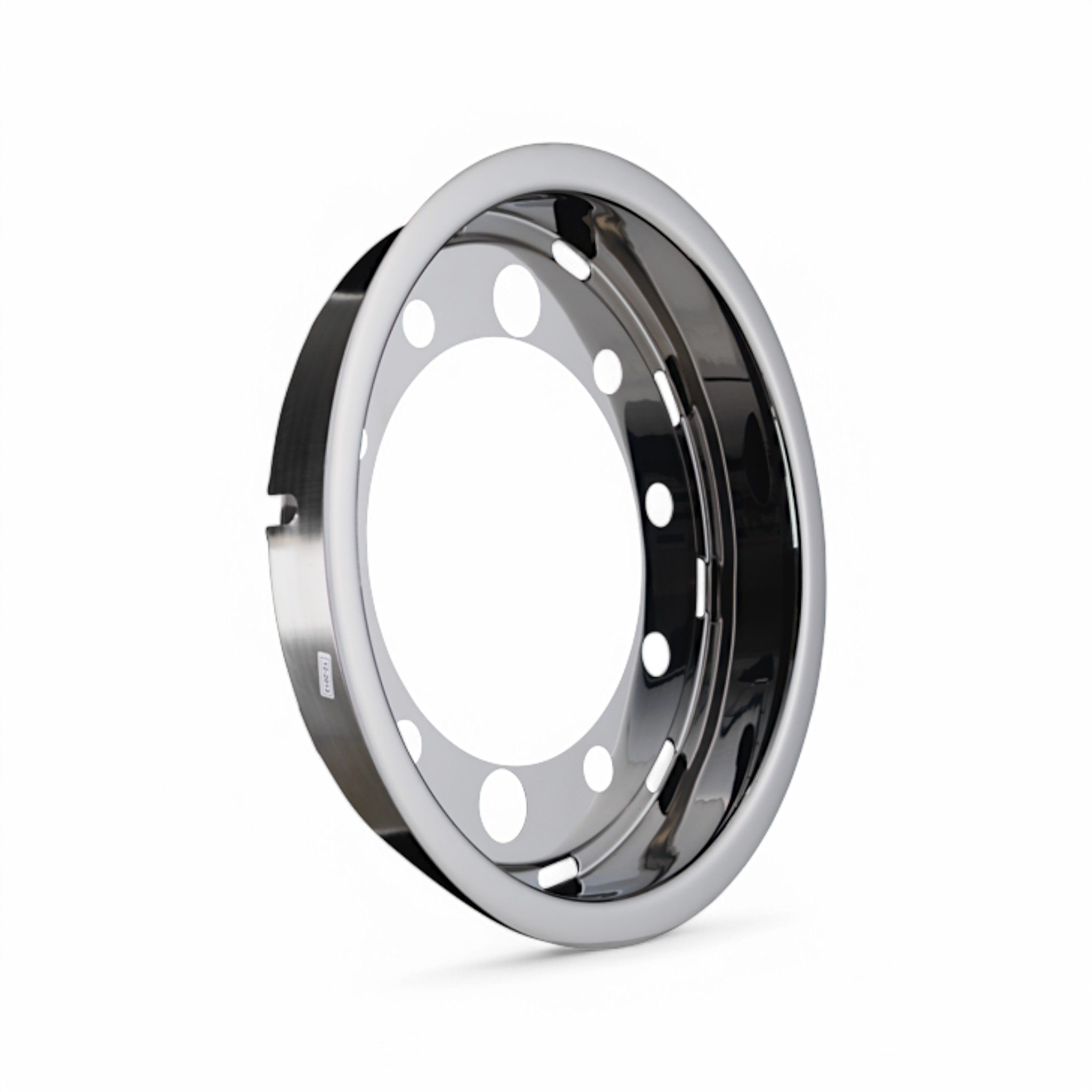 Fälginsats i blankpolerat rostfritt stål.Diameter: 19.5"Bredd: 14"Djup: 80mmET/Offset/Inpressning: 120Bultcirkel: 335mmAntal bulthål: 10