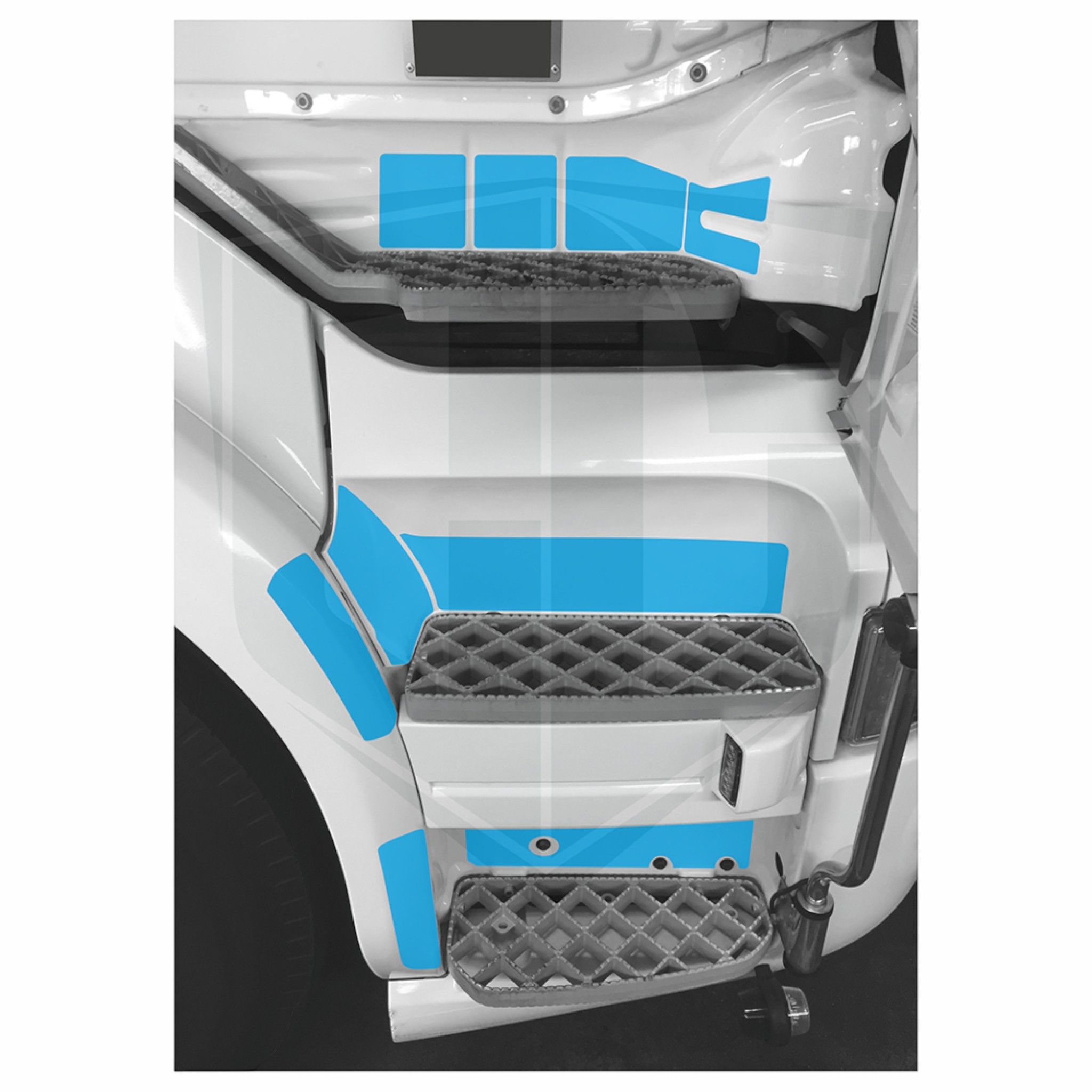 Skydda lacken på din Scania R-serie mot repor, slitage och stenskott. Detta instegsskydd är tillverkat i en slitstark och transparent premiumfolie som är exakt anpassad för att täcka och bevara de mest utsatta ytorna på instegen.