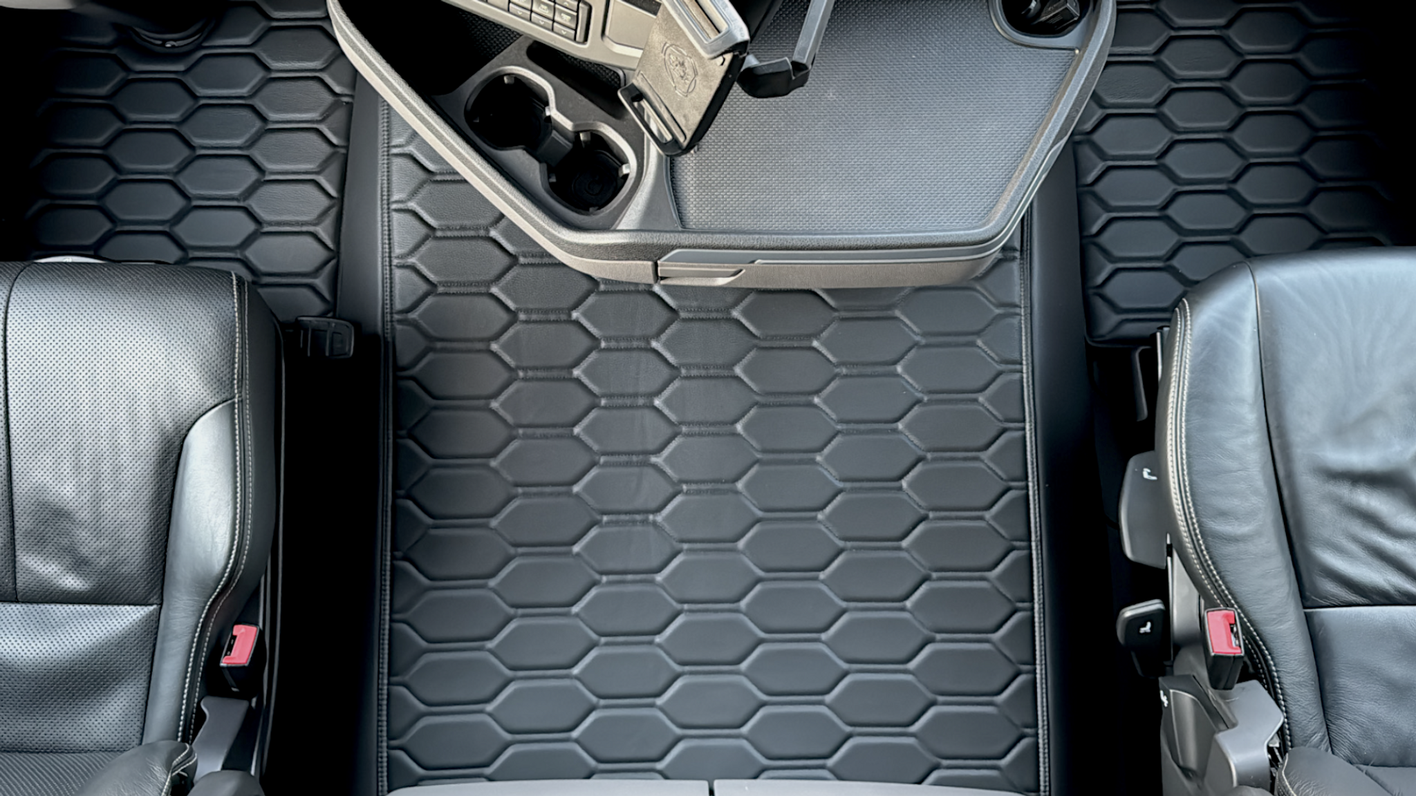 Motortäcke till Scania Next Generation (R-serie) i konstläder med diamantmönster. Passar till lastbilar med automat växellåda.