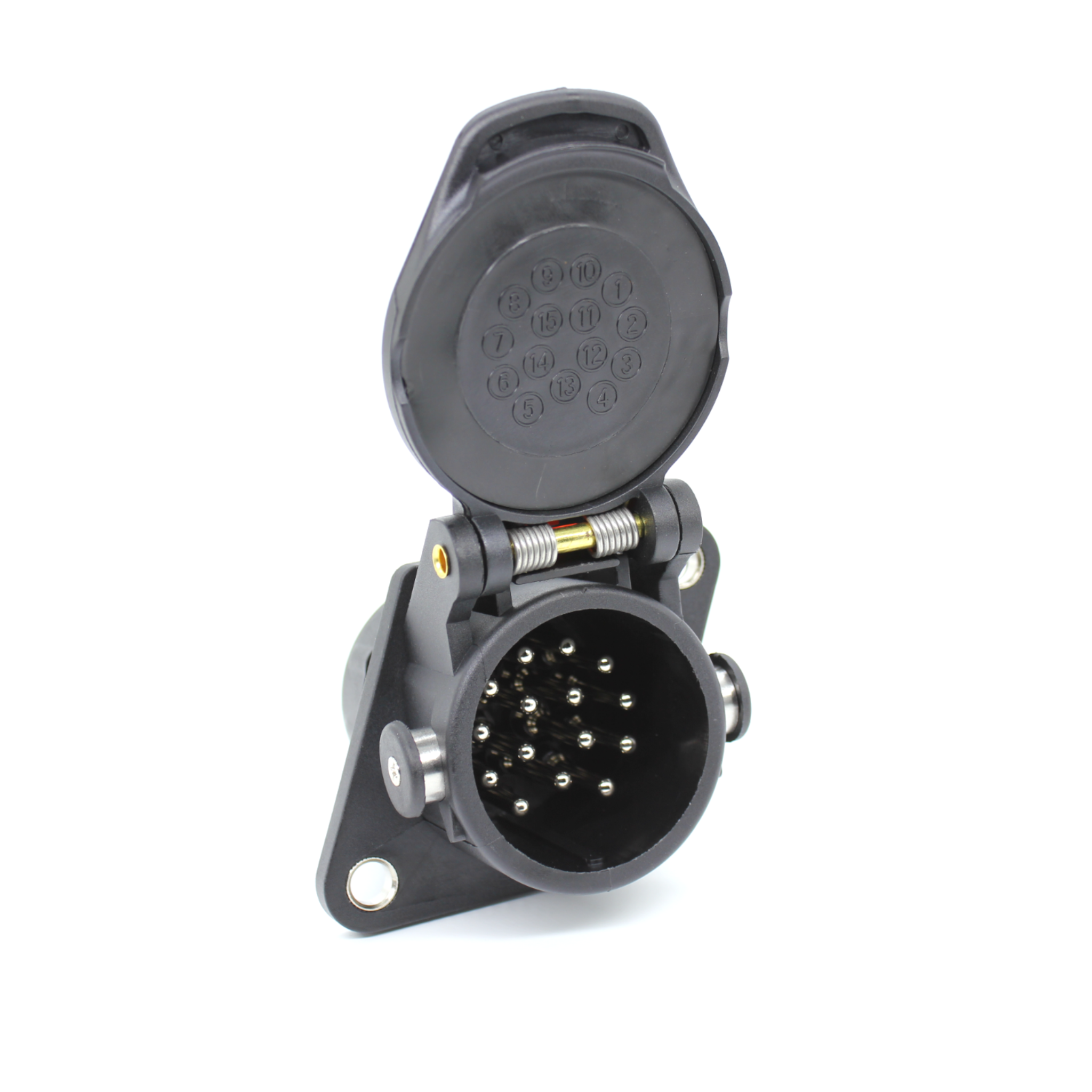 Denna 15-poliga kontaktdosa är utformad för att leverera tillförlitliga anslutningar i krävande fordonsapplikationer. Med 12 stift på 1,5 mm² och 3 stift på 2,5 mm² säkerställs en robust och effektiv strömöverföring.
