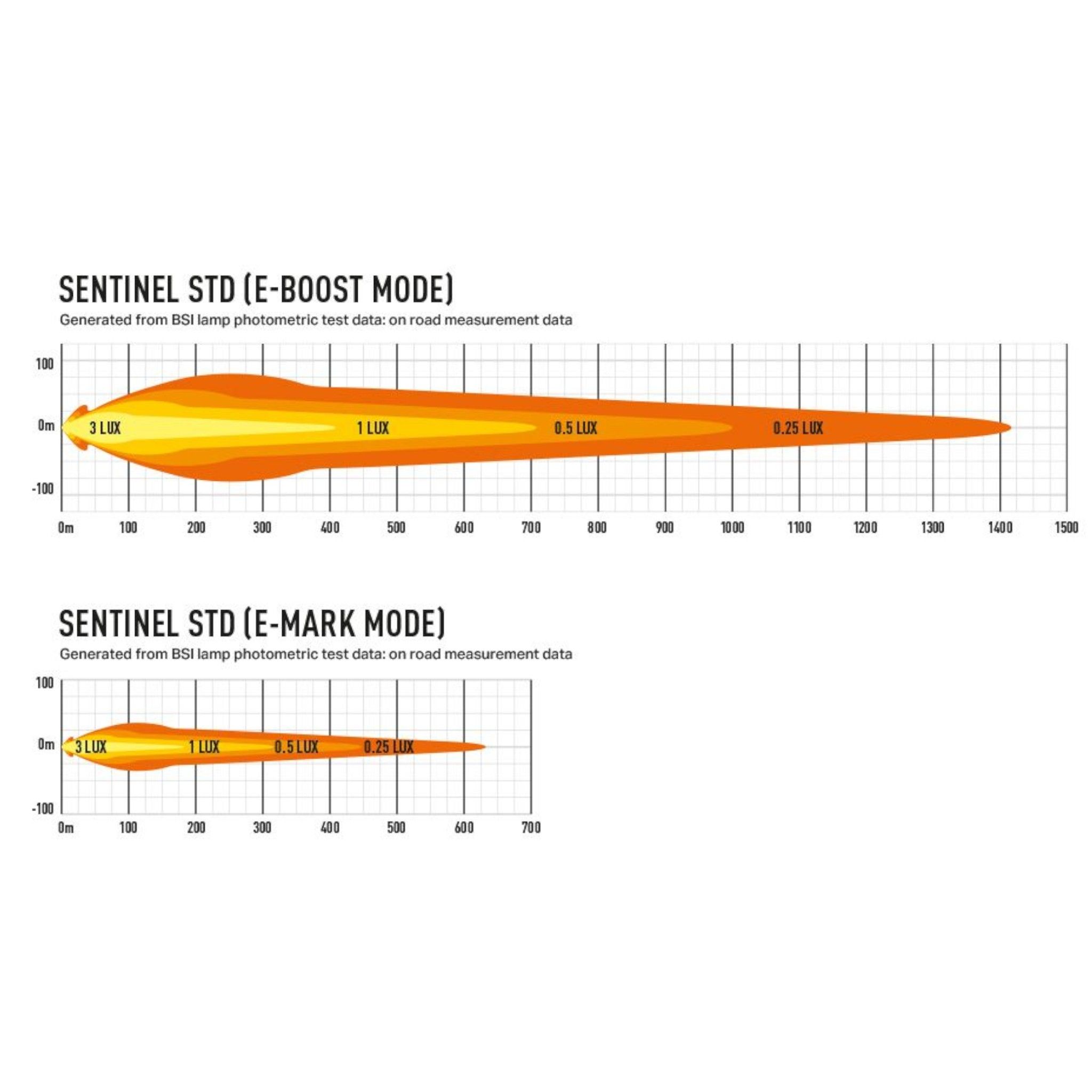 Standardmodellerna Sentinel Black och Sentinel Chrome levererar 9 529 råa lumen, med en räckvidd på över 700 meter och en bred ljusbild på 52 grader – perfekt för både landsväg och terräng. Elite-modellen höjer ribban ytterligare, vilket gör den till det självklara valet för krävande förhållanden. Alla lampor är UNECE-godkända som helljus enligt föreskrift 112 och använder Lazer Lamps innovativa E-Boost-teknik, som gör det enkelt att justera ljusstyrkan för att möta lagkrav.