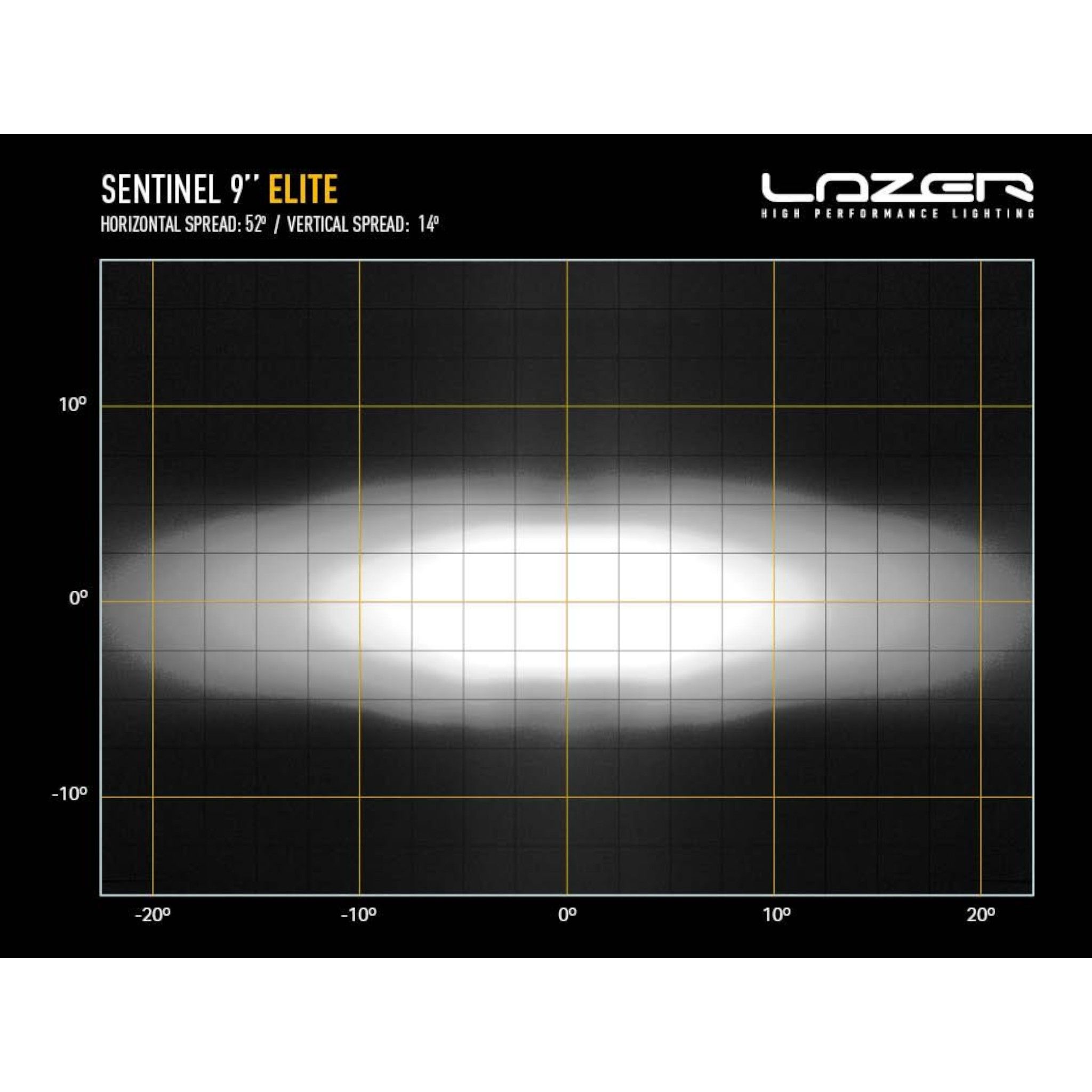 Elite lamporna genererar 15 232 råa lumen och når 1 lux vid 742 meters räckvidd. Det som verkligen gör Sentinel Elite unik är dess 52-graders horisontella ljusspridning, som ger utmärkt sikt på vägkanterna eller spåret med en jämn fördelning från medellångt till långt avstånd. Som alla Lazer-produkter har lampan en färgtemperatur på 5 000K, vilket ger ett behagligt ljus för ögonen samtidigt som föremål framträder med maximal klarhet.