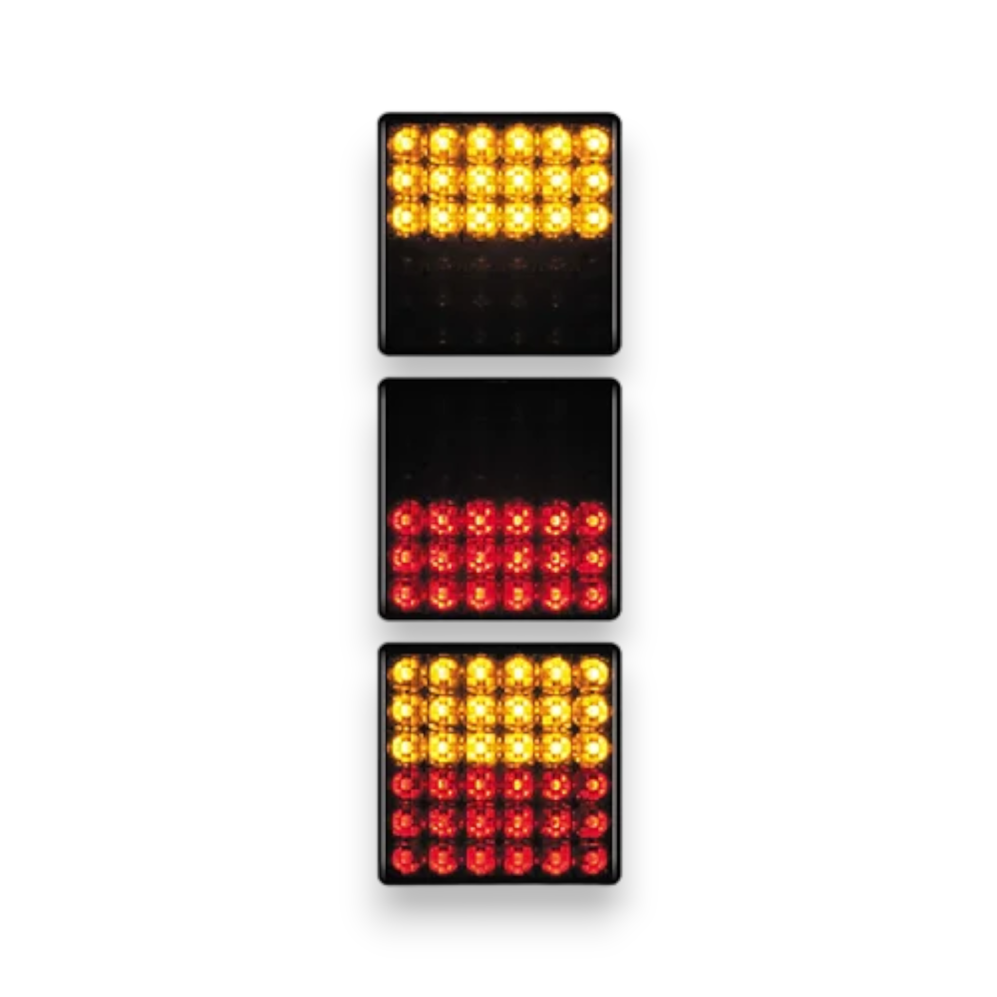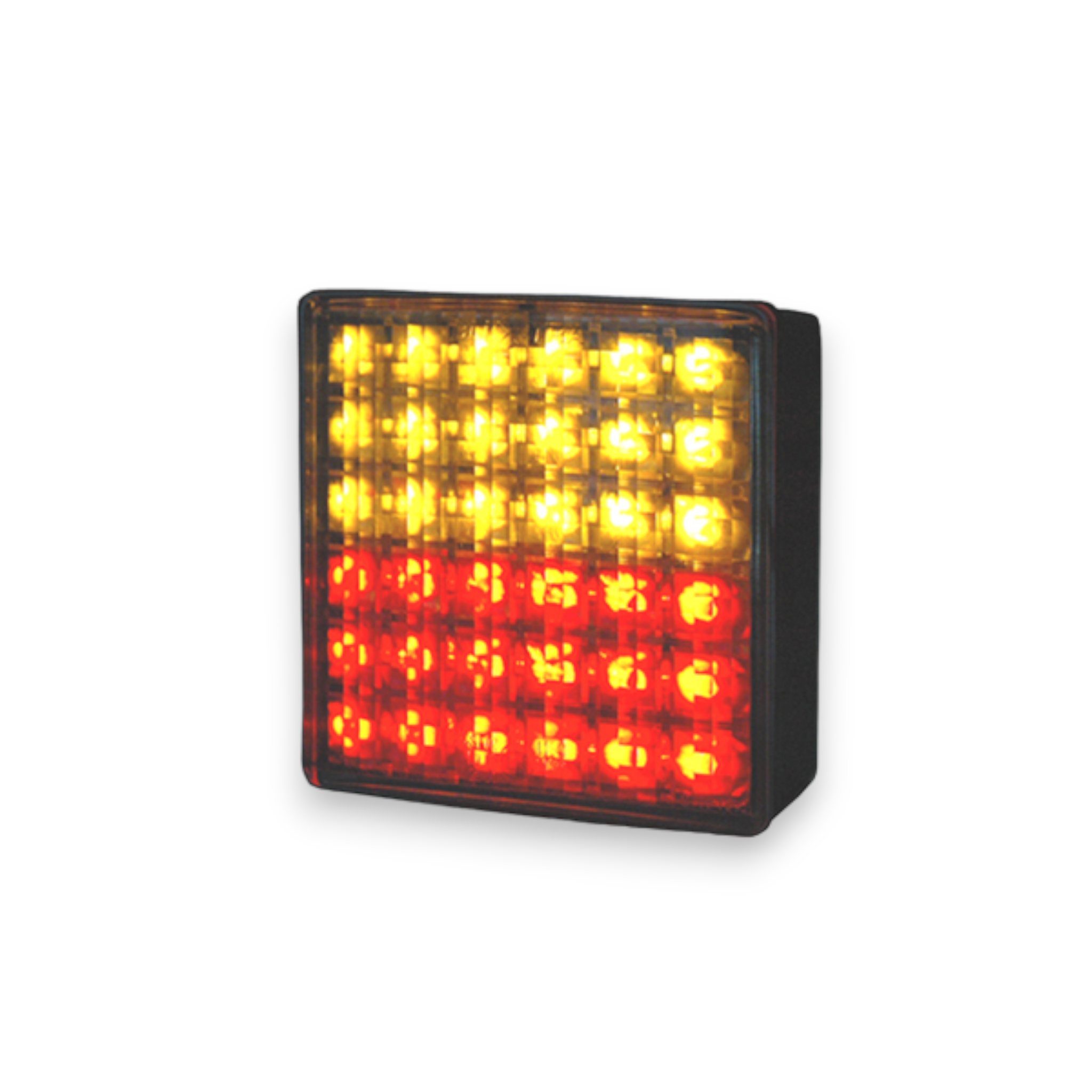 LED bakljus för utanpåliggande montage med 36st dioder. 18st röd positionsljus+bromsljus och 18st gul blinkers.