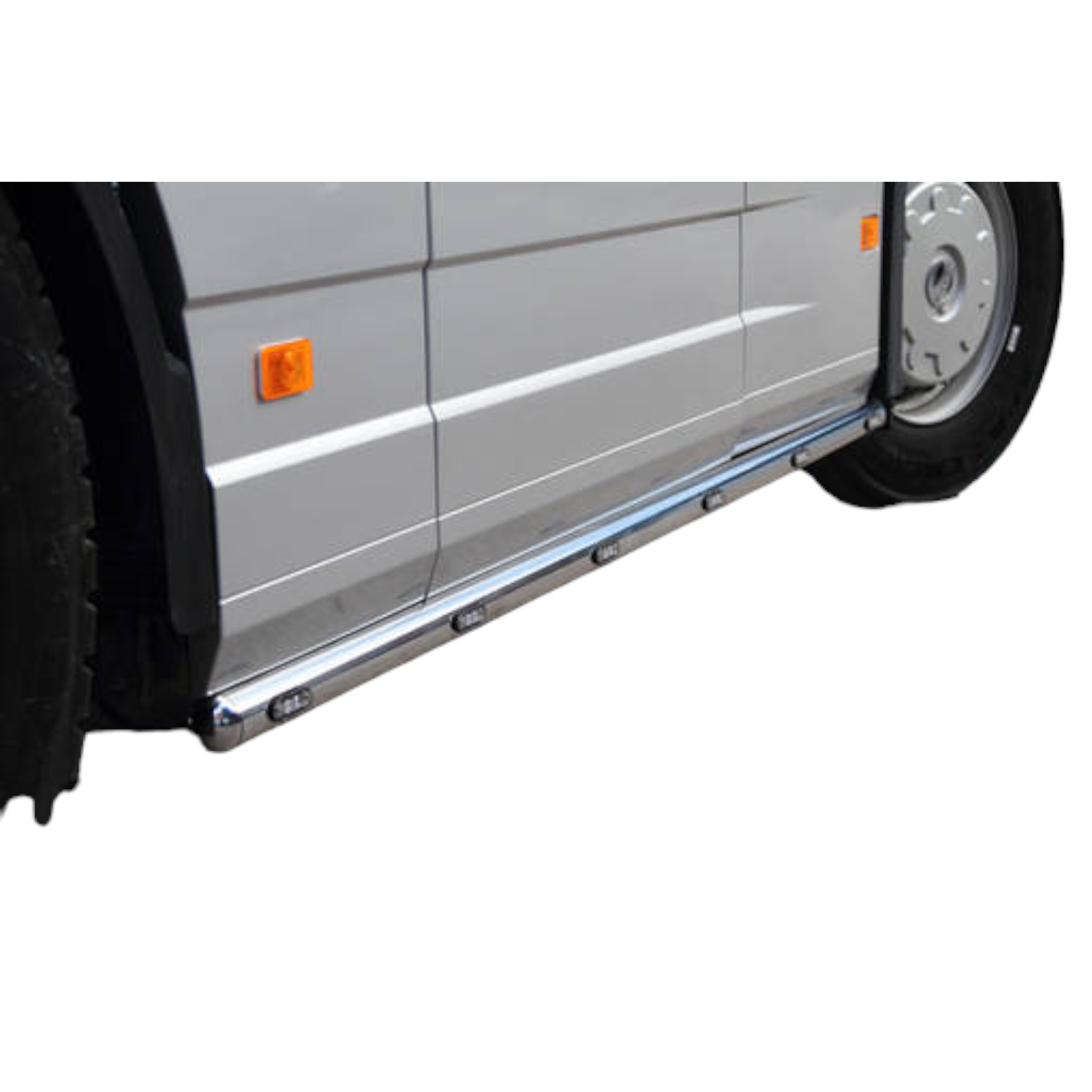 Sidorör tillverkade utav METEC, levereras med 6st (per rör), orange LED positionsljus monterade. Dessa sidorör är tillverkade av högkvalitativt rostfritt stål och har en blankpolerad yta. Med en rör dimension på 60mm, för hjulbas 3700mm. Finns även till hjulbas 3400mm samt 3800mm.