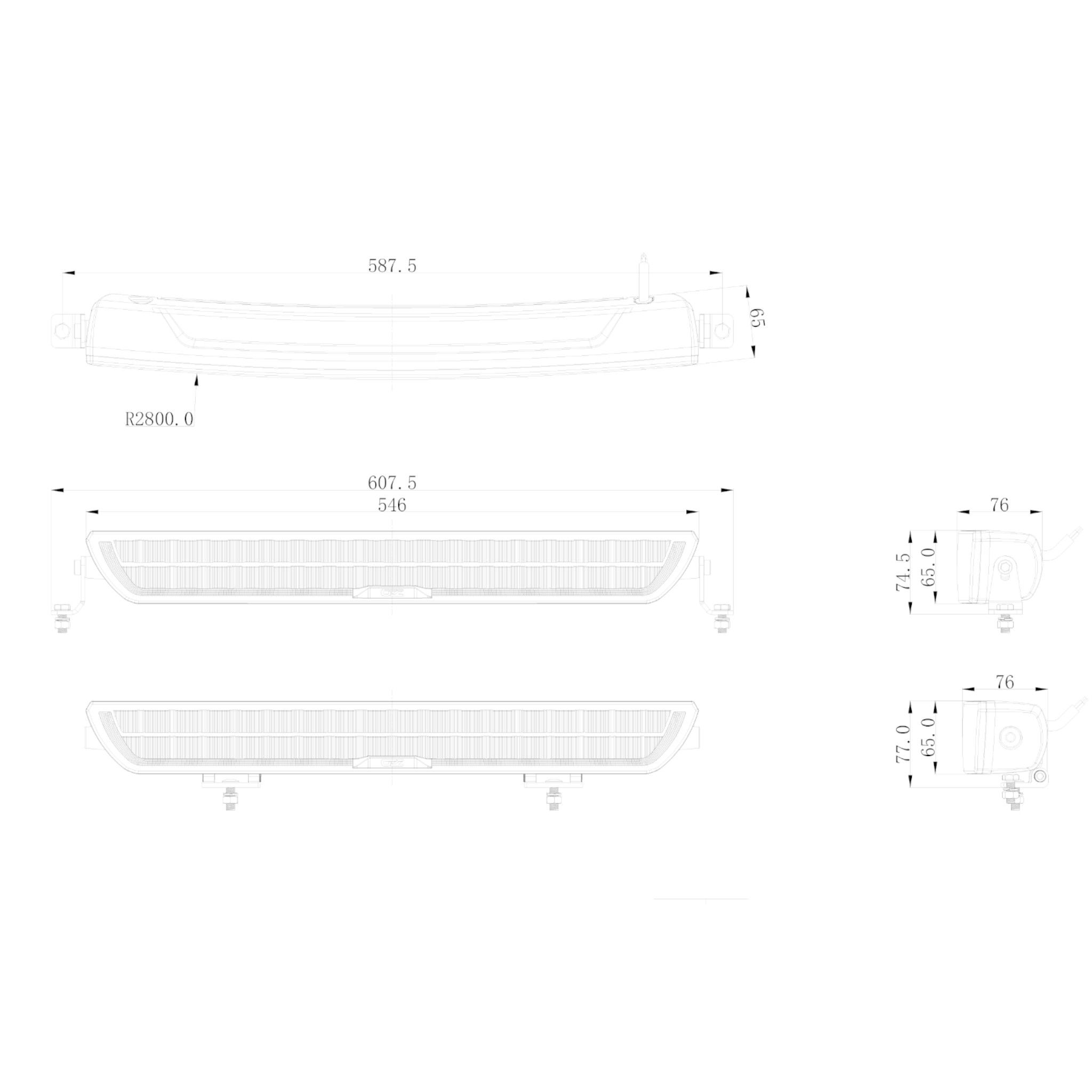 - Dimensioner (mm): 546 x 76 x 65/77