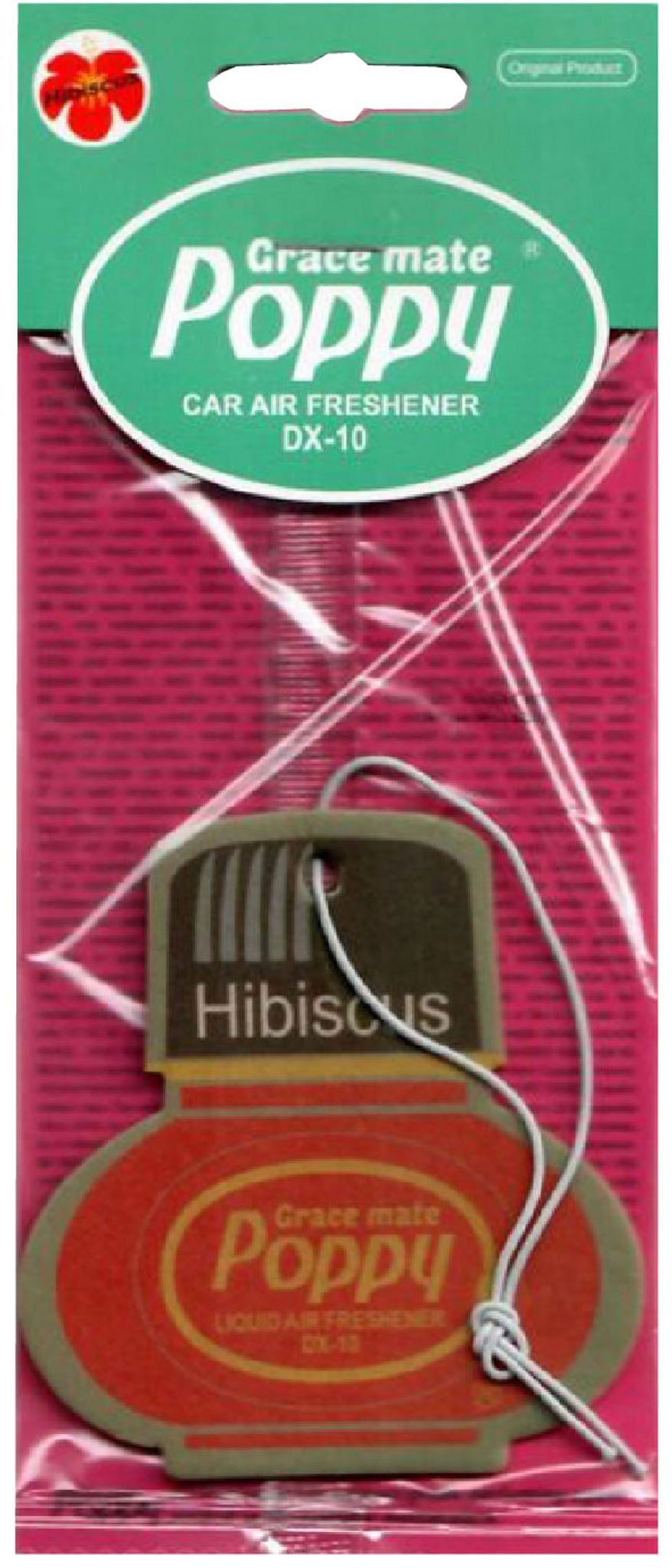 Poppy Grace Mate Poppy Pappersdoft Hibiscus 35 kr inkl. moms 7401057 Grace Mate Poppy, originalet från Japan. En doftis luftfräschare i häng-modell istället eller tillsammans med poppy doftflaska. Monteras hängande.
