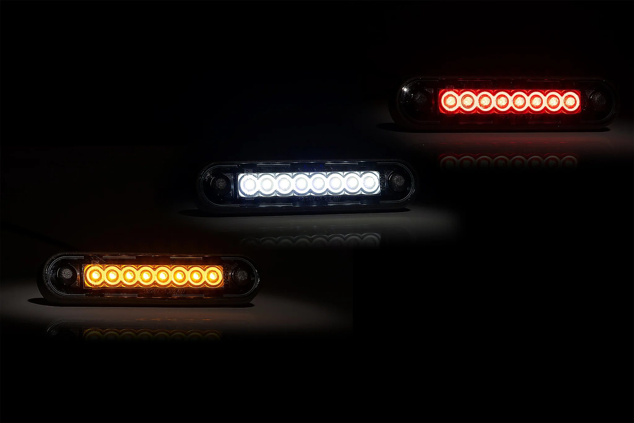 LED positionsljuslampa som passar perfekt för både platt montering eller på rör av rostfritt stål, som ofta används på stänger för transportbilar och lastbilar. Lock till skruvhålen medföljer. Lampan levererar inte bara ett fantastiskt ljusflöde utan även en imponerande ljusstyrka.