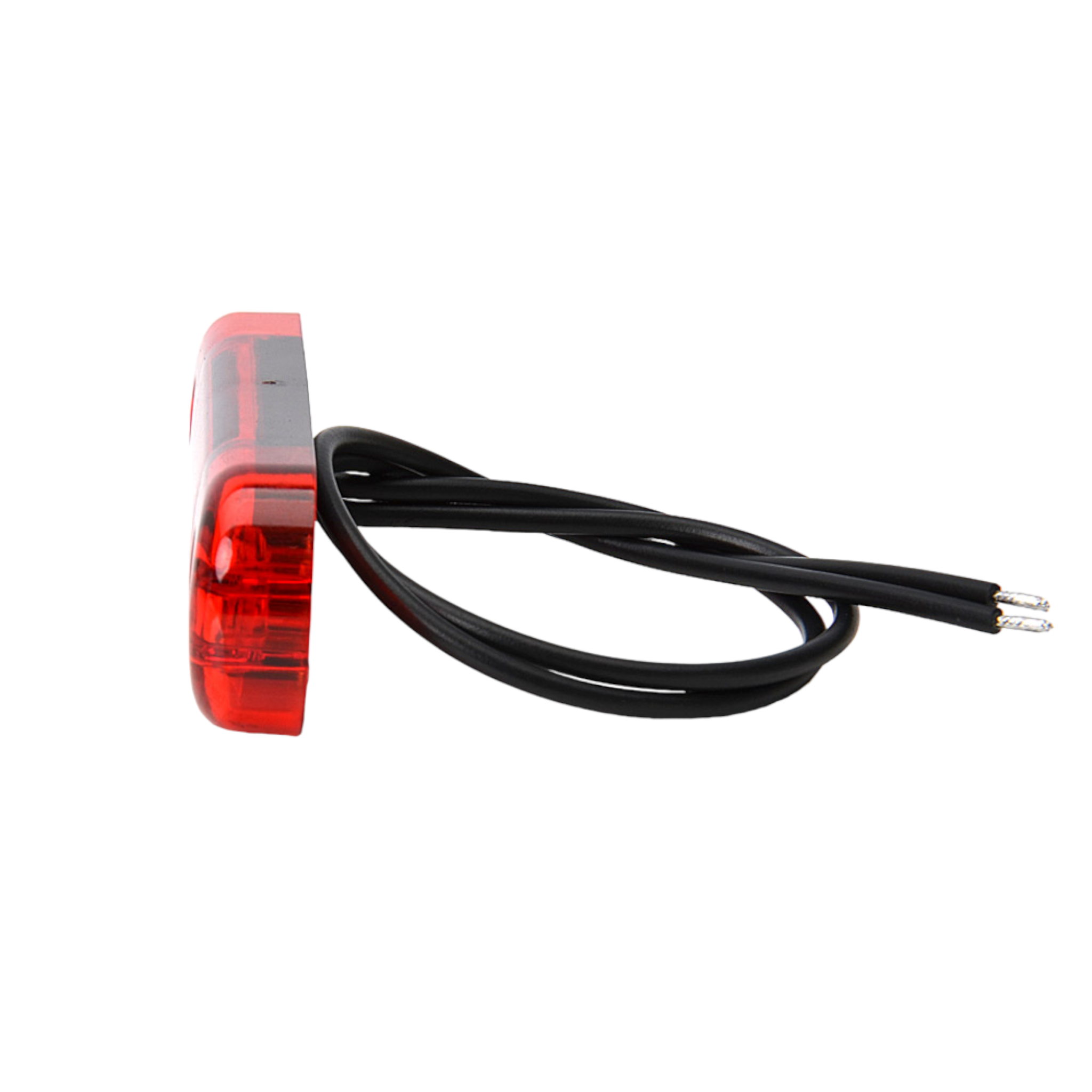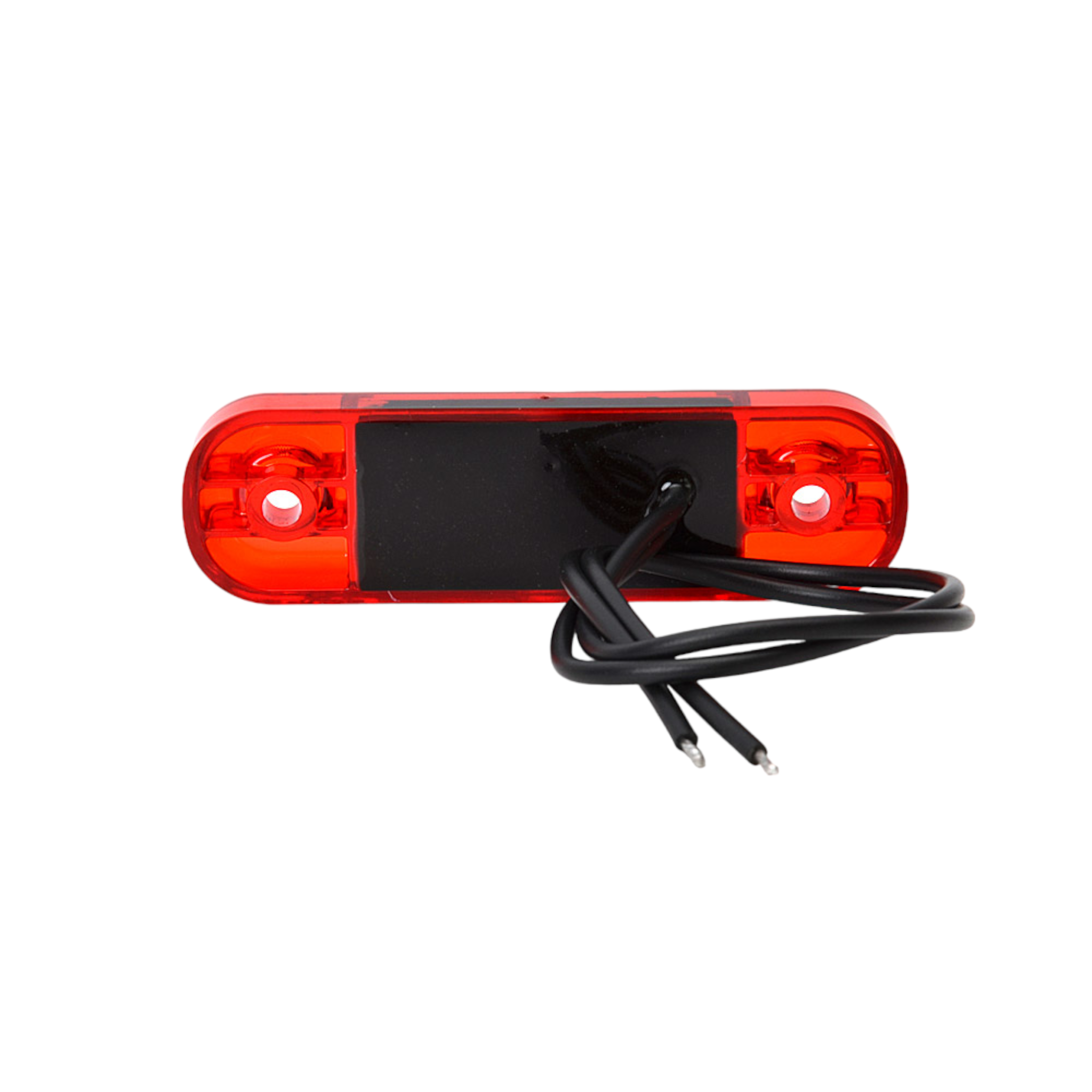 Slimmad Röd LED positionsljus för utanpåliggande montage.E-godkänd. SPECIFIKATIONER Kabel (m): 0.4mBxHxD (mm): 84 x 24 x 10mmCC mått: 61mmDioder (st): 3stLamptyp: LEDAnslutning: KabelVolt (V): 12-24v