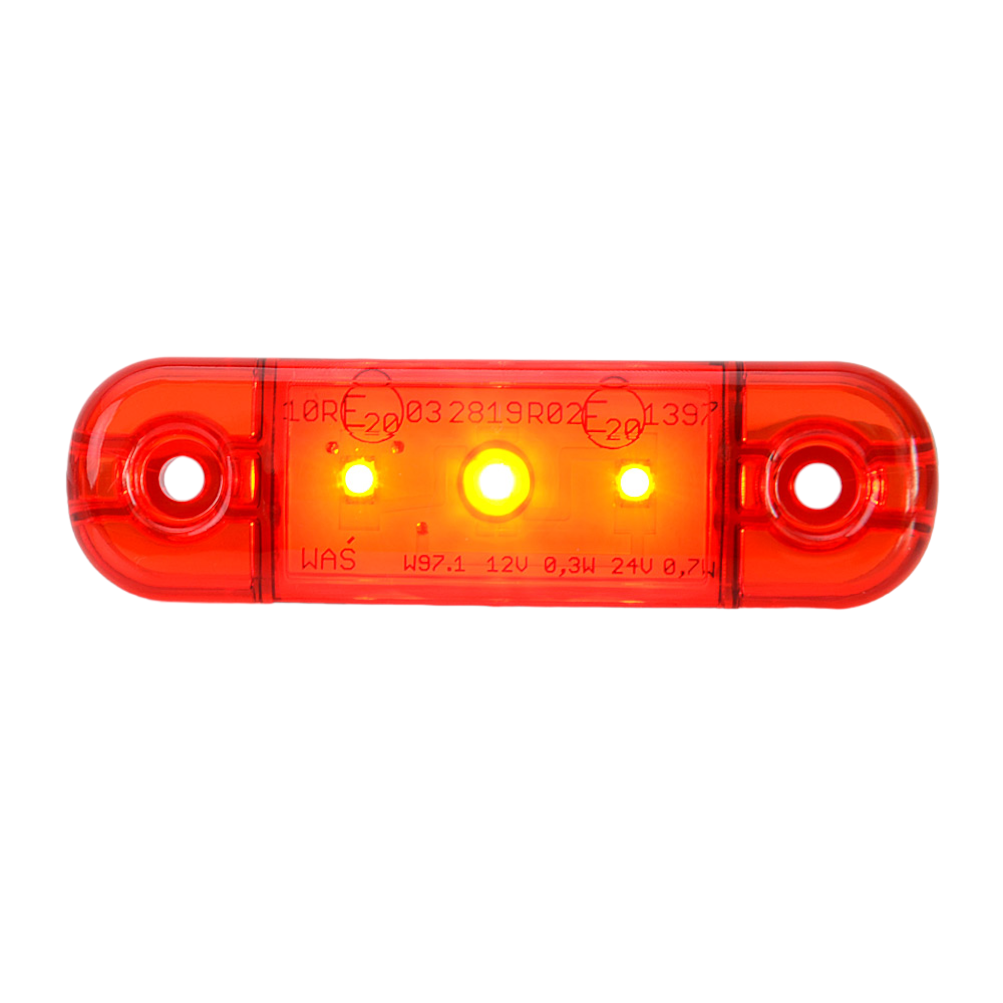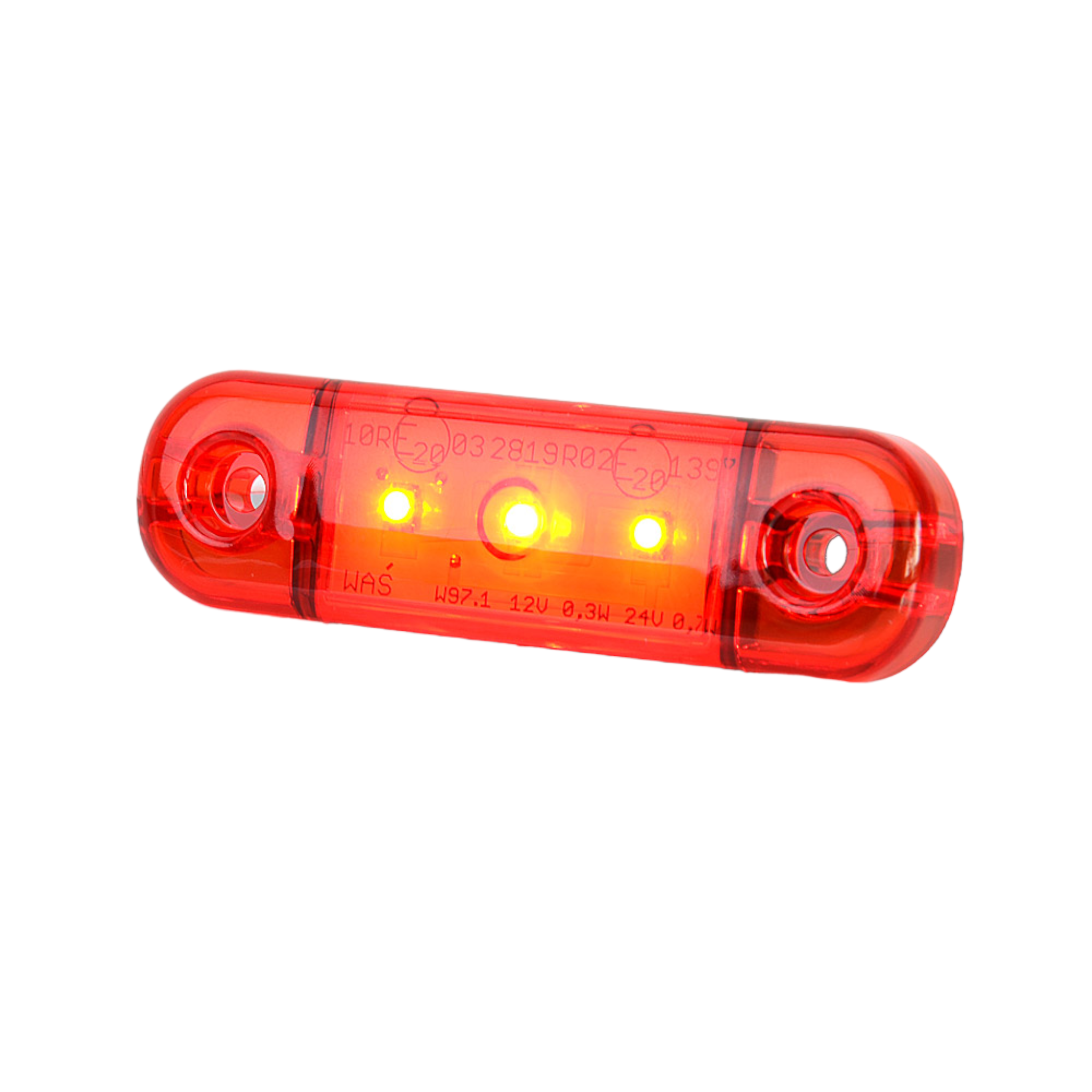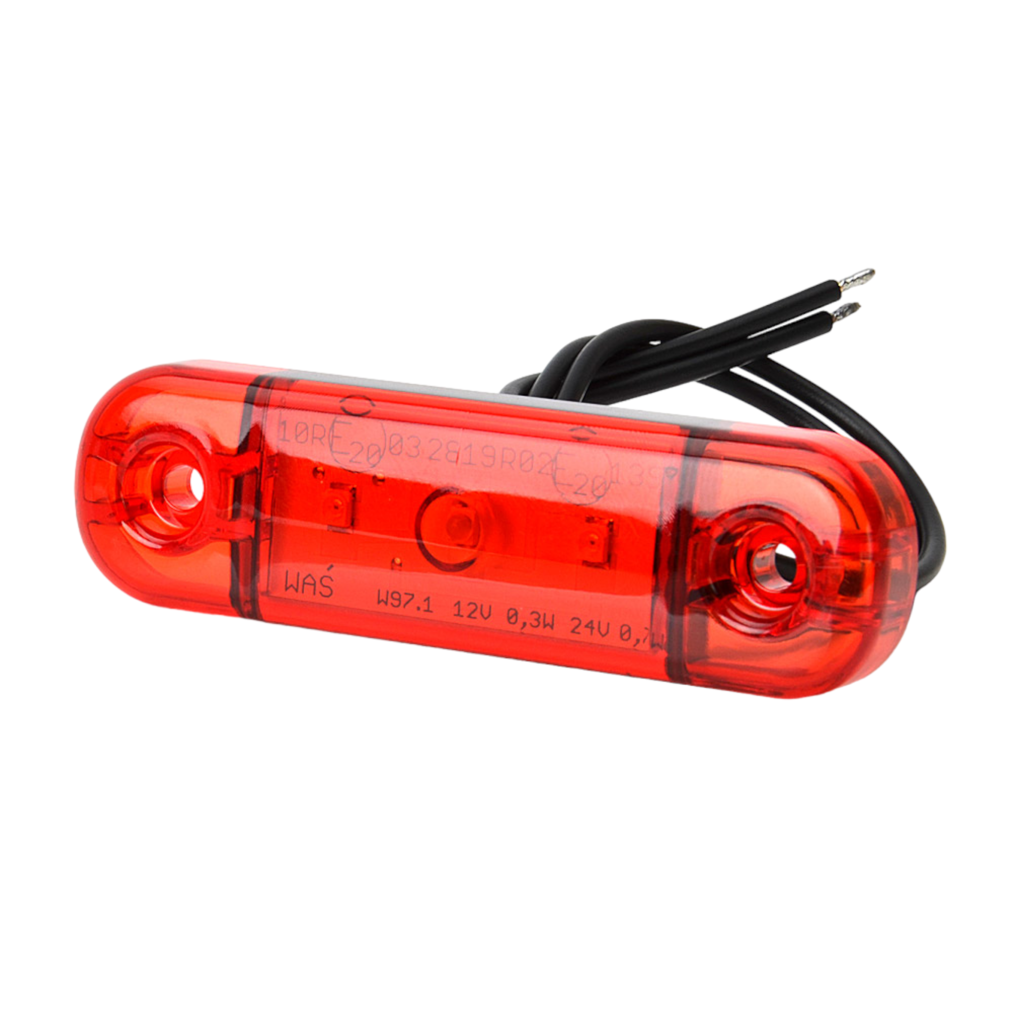 WAS Positionsljus Slim Röd 3 LED 180 kr inkl. moms 2501300 Slimmad Röd LED positionsljus för utanpåliggande montage.E-godkänd. SPECIFIKATIONER Kabel (m): 0.4mBxHxD (mm): 84 x 24 x 10mmCC mått: 61mmDioder (st): 3stLamptyp: LEDAnslutning: KabelVolt (V): 12-24v