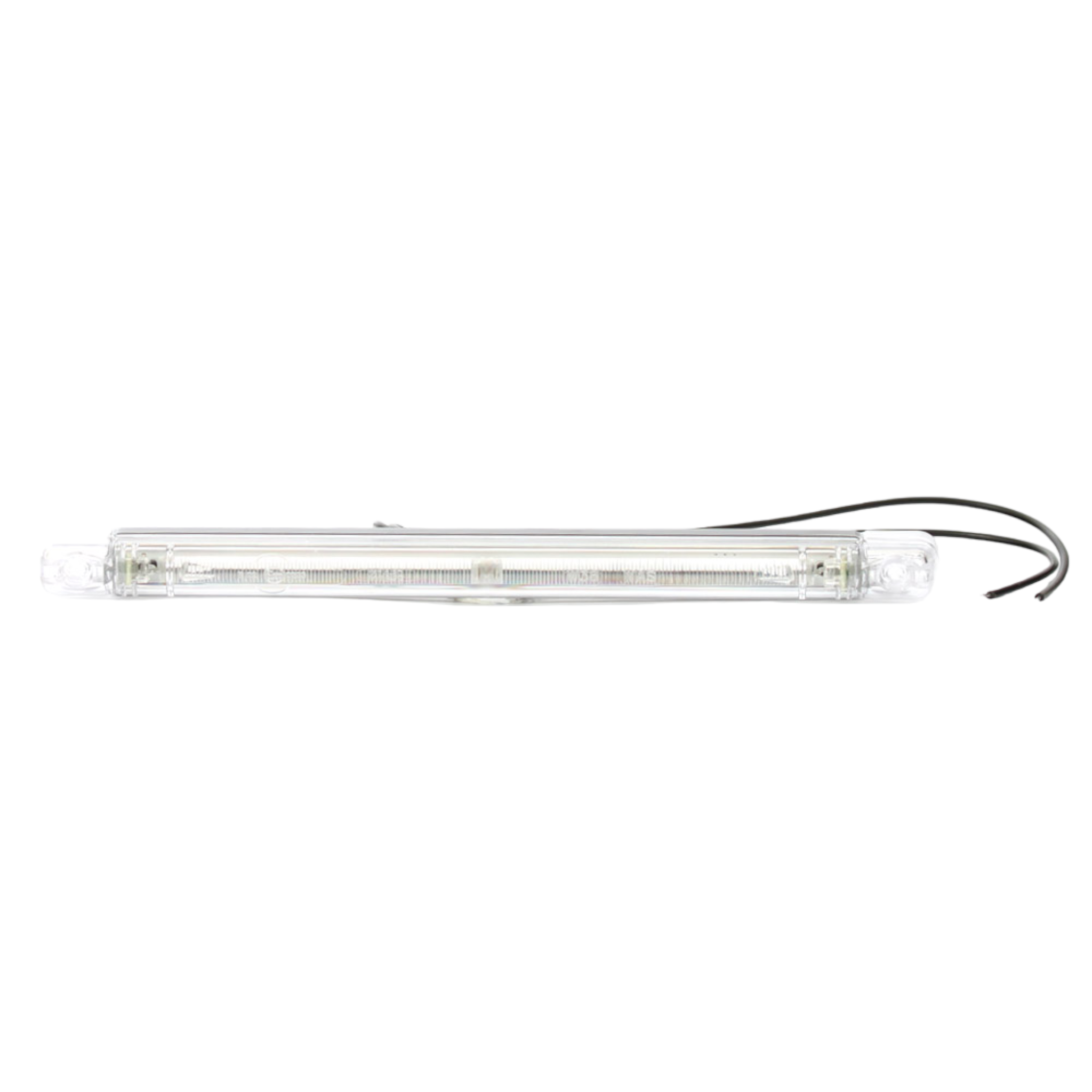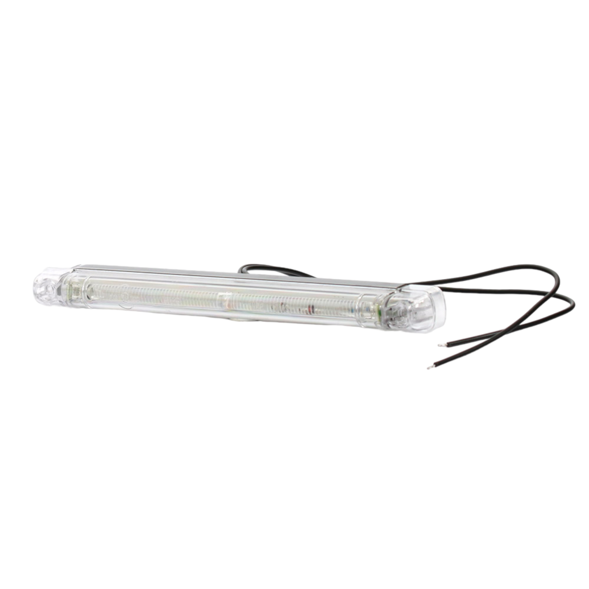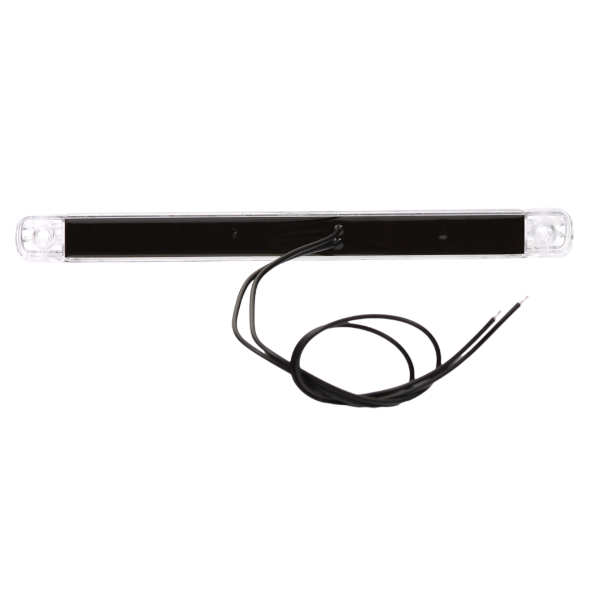 Positionslampa LED med fiberoptik som bidrar till det kraftiga ljusskenet. Linserna är transparenta när lampan är släckt. För plan, utvändig montering.E-märkt.12-24V.