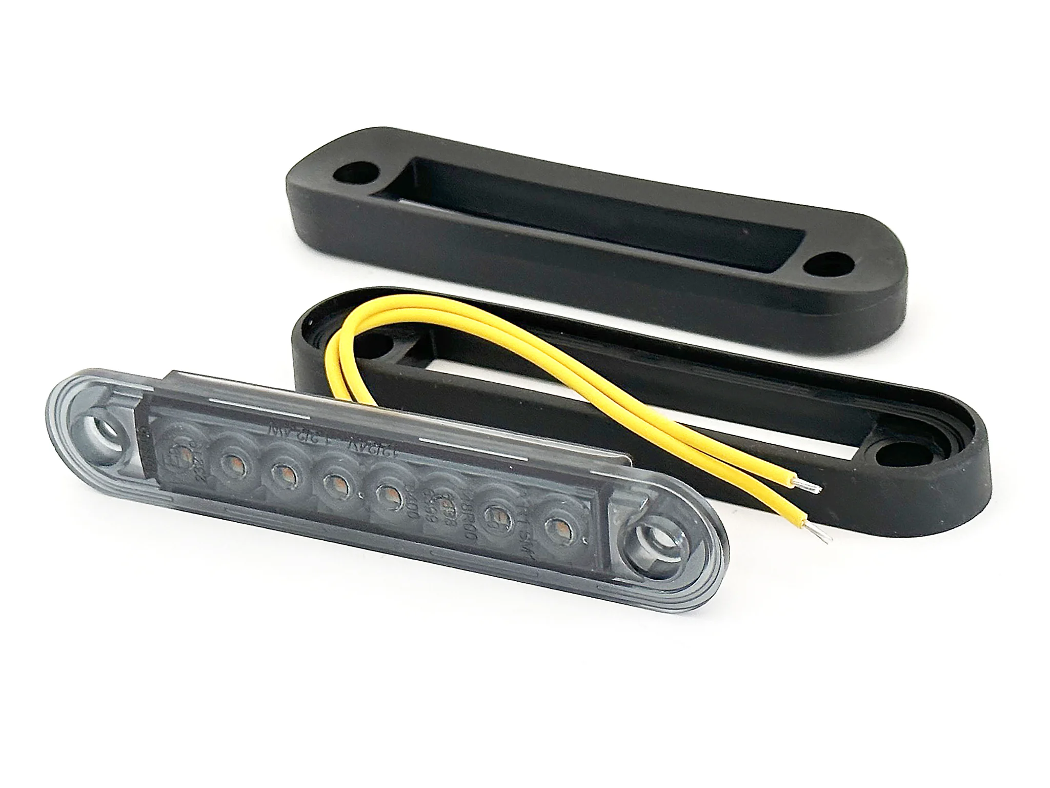 LED sidomarkeringslampa som passar perfekt för både platt montering eller på rör av rostfritt stål, som ofta används på stänger för transportbilar och lastbilar. Lock till skruvhålen medföljer. Lampan levererar inte bara ett fantastiskt ljusflöde utan även en imponerande ljusstyrka.