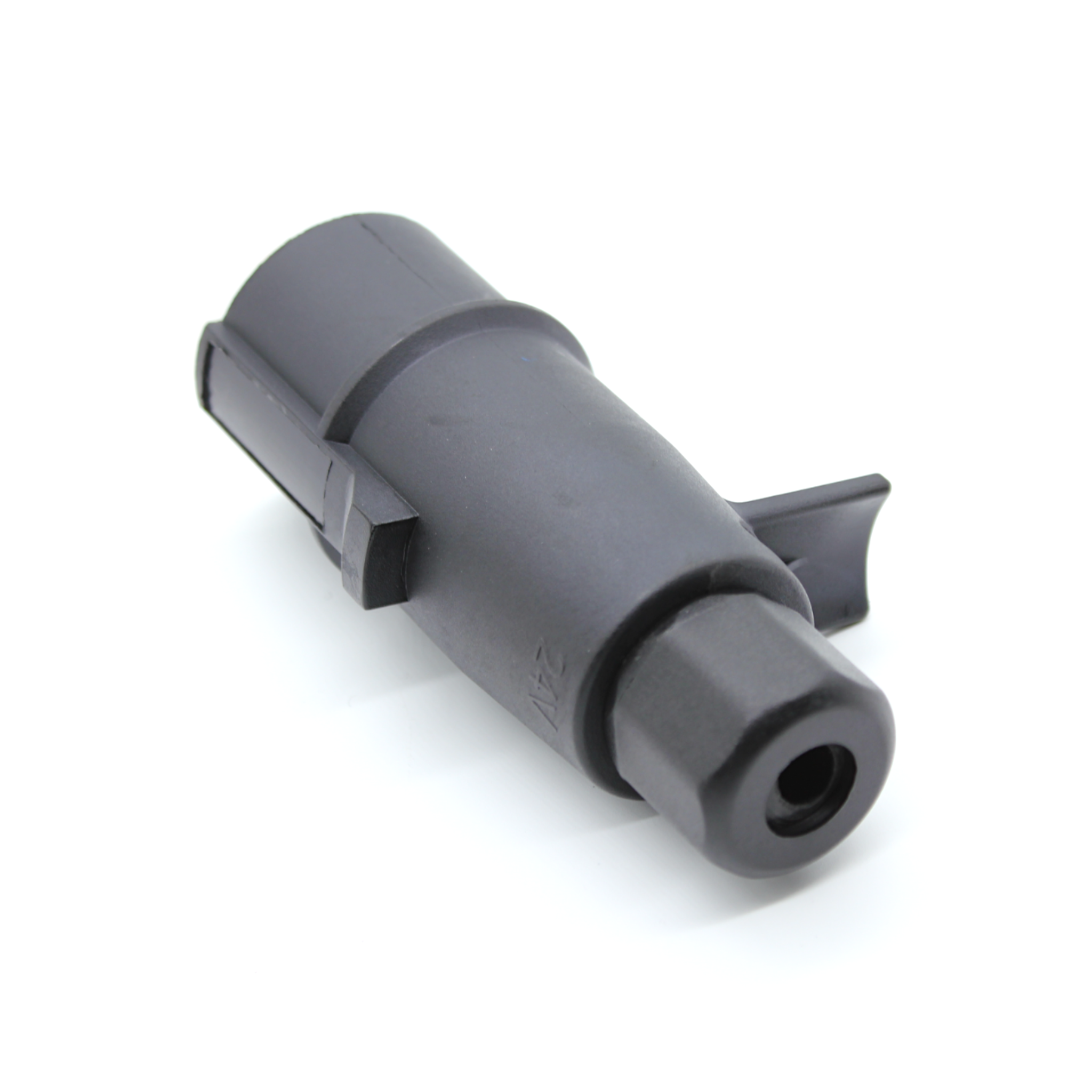Denna robusta 7-poliga stickpropp är konstruerad för att klara krävande miljöer och är utrustad med en slitstark gummitätning för extra skydd mot väder och smuts. Stickproppen är anpassad för 24V-system och följer ISO 3731-standard.